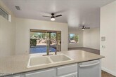 The Grand,Full-time-Unfurnished,Resort style living. This Kiva Model is light & bright. Kitchen is open w/white cabinets,breakfast bar,dining area w/view of backyard! Wood-Look plank tile floors & new LVP in bedrooms. Pantry has wall of cabinets. Primary bedroom has oversized walk-in closet. Primary bath has 2 sinks. The 2-car attached garage has built-in cabinets & laundry. Enjoy the covered patio,& beautiful,lush desert landscaping for privacy. Appliances included. Great location within The Grand Community & close to Rec center,dining,shopping and medical facilities. The Grand is a resort lifestyle age restricted (55+) community with top-notch amenities including heated pool,spa,fitness center,hiking/biking trails,golf,pickleball & hobbies.