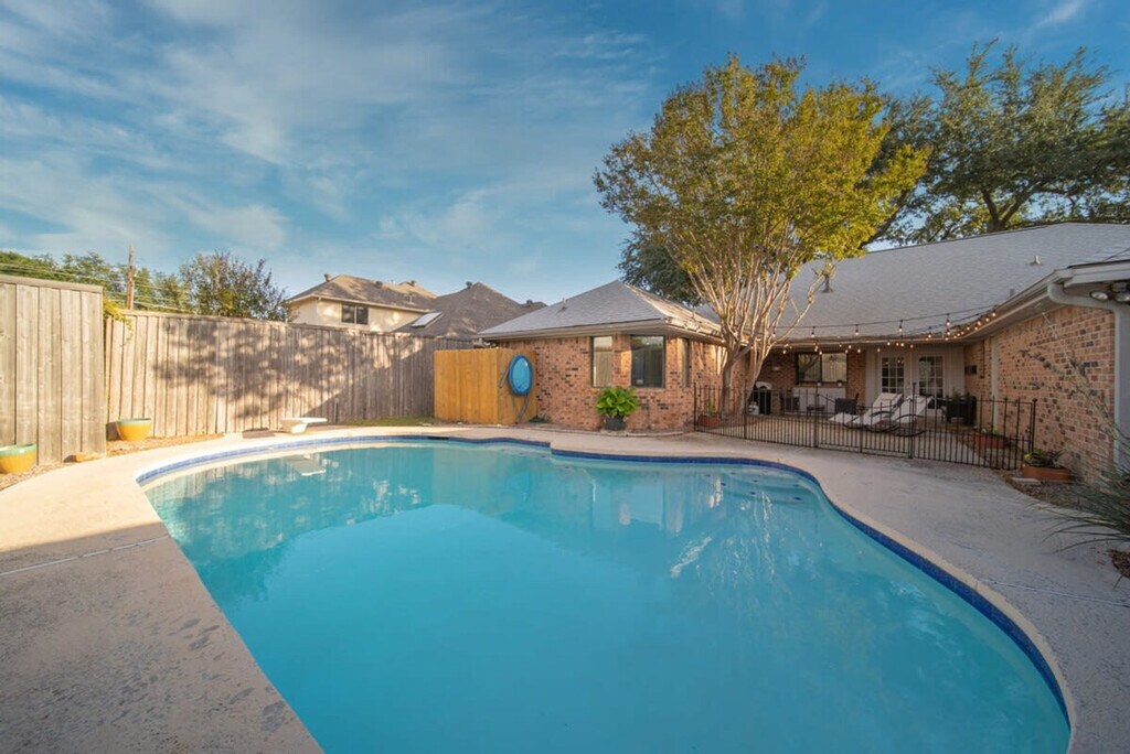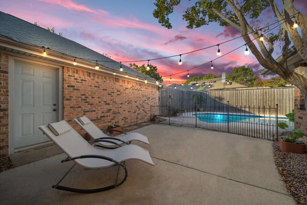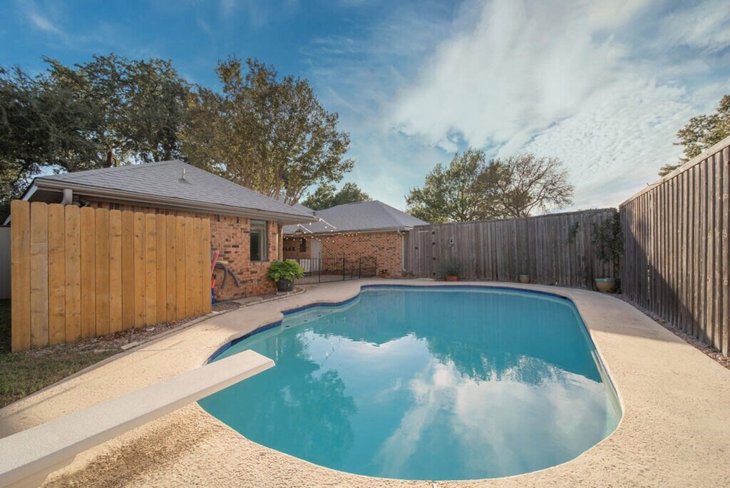 Welcome to your home away from home in Dallas! Perfect for groups of up to 16 people, this charming vacation home features 5 bedrooms, 3 bathrooms, and a backyard pool oasis. Immaculately designed with your comfort in mind, the bright kitchen, cozy living room, and comfortable bedrooms are sure to impress. Conveniently located just minutes from some of Dallas’ best restaurants, this home offers everything you could ask for. This home caters to both short-term and medium-term stays, making it an excellent choice for corporate housing needs. Furnished with all the amenities of home, it features a luxurious kitchen with modern farmhouse accents, a dedicated dining area, and a spacious living room with high ceilings and built-in shelving. The primary bedroom includes a king-size bed and ensuite bathroom, while four additional bedrooms offer queen and bunk beds. Three full bathrooms are equipped with essential toiletries, and the backyard boasts a swimming pool and furnished patio. Free parking is available in the garage and on the driveway. A laundry room is also available for your use. We welcome house-trained pets with a non-refundable pet fee of $150 per pet, with a maximum of 2 pets per stay. An additional nightly rate applies for more than 6 guests, with a $29/night fee for each additional guest. Richardson is a lively city located in the suburbs of Dallas, home to the University of Texas at Dallas. Enjoy the rich cultural diversity, college atmosphere, and wealth of outdoor activities. You're only a few minutes from Dallas, with attractions like the North Texas Automotive Museum and Heights Family Aquatic Center nearby. For those exploring Dallas, don't miss Reunion Tower, Perot Museum of Nature and Science, and the Dallas World Aquarium. Smoking of any type is not allowed, with violations subject to a $450 fine plus the cost to clean, deodorize, and repair damages. Check-in is at 4pm and checkout is at 10am. No parties or events are allowed, and only registered guests are permitted on the property. Room #5 will be opened for groups of 12 or more guests. A noise alert device is installed to monitor decibel levels, ensuring compliance with local noise ordinances. The home offers high-speed Wi-Fi and a wall-mounted flatscreen TV for entertainment. A desk is available in the primary bedroom for any work-from-home needs. Registration Number: 004114