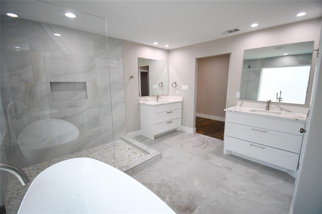 Step inside to experience an open-concept floor plan designed for both comfort and style. The heart of the home is a stunning island kitchen featuring gleaming white quartz countertops, custom Shaker cabinets, stainless steel appliances, and a spacious walk-in pantry—perfect for entertaining or everyday living. Relax in the spa-inspired secondary baths adorned with double vanities, quartz surfaces, and glass-enclosed showers filled with natural light. The luxurious primary suite is truly a retreat, boasting a large en-suite bath offering an oversized glass-enclosed shower, two separate vanities, a free-standing tub, and built-ins in the main closet for ultimate organization. Additional highlights include generous walk-in closets throughout, high-end finishes, and thoughtfully designed living spaces that balance elegance with functionality. Available for move-in starting October 4, 2025. Tenants recently vacated as of September 30. Located in the highly desirable North Grapevine area—close to the lake, Oak Grove Park, and near elementary school—this home offers refined living in an unbeatable location. Built in 1980. Home extensively remodeled 2021. All Neptune Ventures residents are enrolled in the Resident Benefits Package (RBP) for $50.00 per month which includes renters insurance, HVAC air filter delivery (for applicable properties), credit building to help boost your credit score with timely rent payments, $1M Identity Protection, move-in concierge service making utility connection & home service setup a breeze during your move-in, smart keyless home access, our best-in-class resident rewards program, & more!