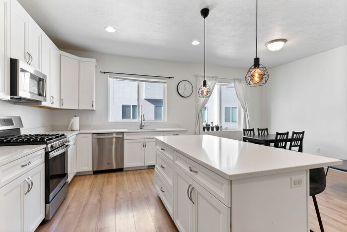 Now available for rent in a highly desirable Bluffdale location, this modern Day Ranch townhome offers a clean, functional layout with stylish finishes throughout. The main level features an open-concept design that connects the kitchen, dining, and living areas, creating a bright and comfortable space for everyday living and entertaining. The kitchen includes quartz countertops, a large center island, and a pantry that provides excellent storage and organization. Upstairs, you will find a private primary suite with its own bathroom and balcony access, offering a quiet space to relax. Additional features include a flexible bonus area that can be used as a home office or additional living space, a convenient mudroom area, and ample storage options throughout the home. Located near parks, trails, and major commuting routes, this home offers easy access to outdoor recreation and everyday conveniences while maintaining a peaceful neighborhood setting in Bluffdale. This property provides a well-balanced combination of modern design, functionality, and location convenience. *$400 New Tenant Leasing Fee *$50 Resident Benefit Package * All utilities are tenant responsibility This property allows self guided viewing without an appointment. Contact for details.
