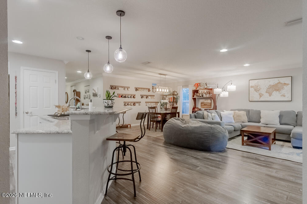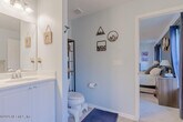 This beautiful home in Bartram Creek is a MUST SEE! This home has 4 bedrooms and 2 full baths with a open floor plan. Bathrooms include upgraded light fixtures and counter tops. This home has everything needed in a dream kitchen with top of the line upgraded GOURMET kitchen. Double ovens,stainless steel appliances,back-splash,granite counter tops and a large FARMHOUSE sink. Enjoy sitting in your new living room area or back patio overlooking the water with a beautiful fountain as if it was made just for your viewing. The home has 8ft ceilings all throughout. This home is next to the community park. The home is just a short walk to the community club house which includes a beach walk in pool,putting green,fire pit. Schedule appointment to view this beautiful home today! MLS# 2135588