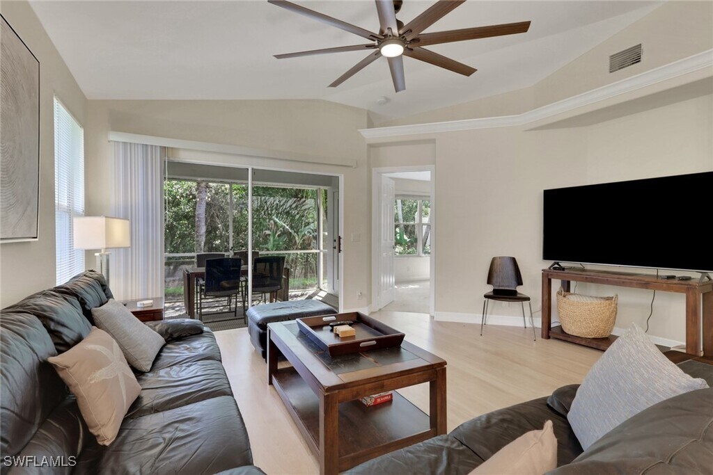 Welcome to this beautifully maintained home in the highly desirable gated community of Sterling Oaks. Featuring two bedrooms plus a huge den that could easily serve as a third bedroom while still leaving space for a desk,this property offers comfort,flexibility,and a touch of luxury. Inside,you’ll find beautiful neutral colors and luxury vinyl plank and tile flooring throughout the main living areas,creating a bright and inviting atmosphere. The spacious kitchen is a chef’s dream with granite countertops,newer stainless steel appliances,and a breakfast bar that opens to the living and dining spaces. The primary suite easily accommodates a king-sized bed and features a private door to the screened lanai overlooking a peaceful preserve with sunny southern exposure—perfect for morning coffee or evening relaxation. The primary bath includes dual vanities and generous storage,while the guest bath offers a convenient tub and shower combination. Additional features include a large laundry room with washer and dryer,a two-car garage with extra refrigerator,and driveway parking for two more cars. Furniture is negotiable,making it easy to move right in and start enjoying the Naples lifestyle. Sterling Oaks is a fantastic neighborhood known for its 24-hour guarded gate and resort-style amenities. Residents enjoy a massive tropical pool with full-service bar,a lap pool,state-of-the-art fitness center,pickleball and tennis courts,and an active clubhouse offering dining and social events. Located just south of Bonita Beach Road,this home provides quick access to Delnor-Wiggins Pass State Park,Barefoot Beach,and a wide variety of restaurants,shops,and nearby Publix grocery stores. Available for annual rental and furnishings are negotiable.