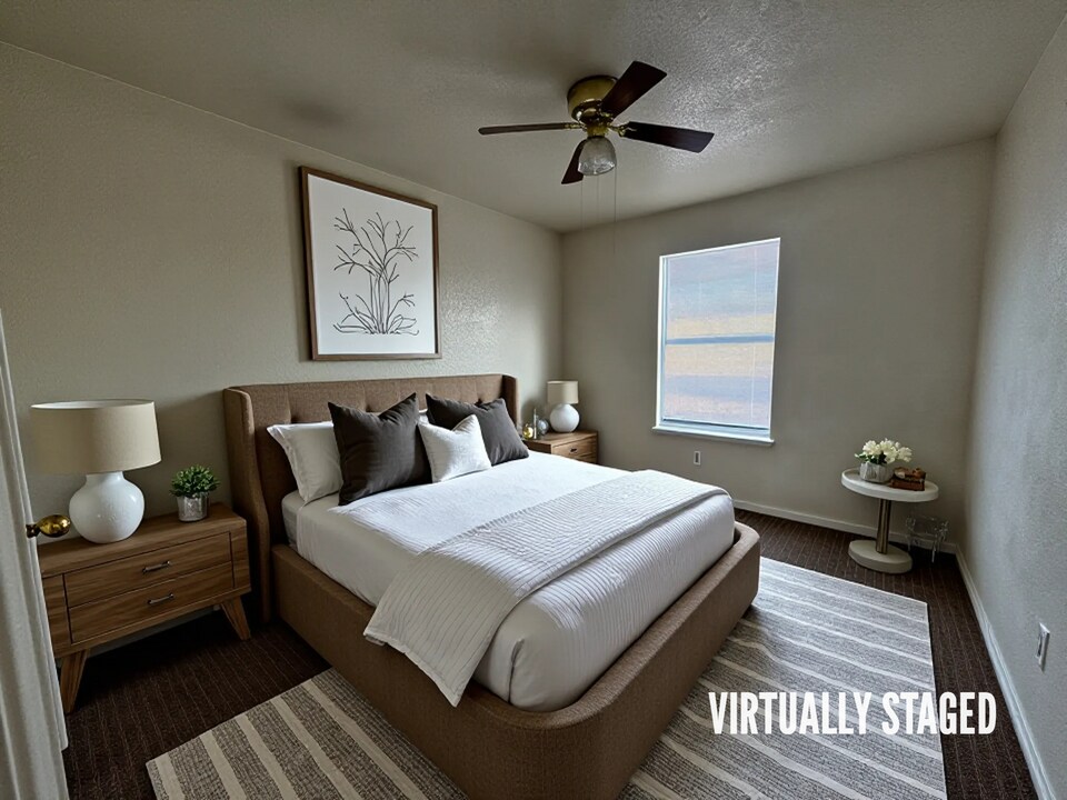 View 360 Virtual Tour: Welcome to our 2-bedroom, 1-bathroom apartment located in the heart of Killeen, TX. Step inside and you'll find a cozy space filled with an abundance of natural light, creating a warm and inviting atmosphere. The kitchen is equipped with white appliances, perfect for preparing meals and entertaining guests. The bedrooms feature plush carpet flooring, providing comfort and a touch of luxury. Take a virtual tour to experience the charm and convenience of this lovely apartment. Disclaimer: The furnishings or enhancements shown are AI-generated and intended for inspiration only. They may not reflect the actual scale, condition, or current features of the property.