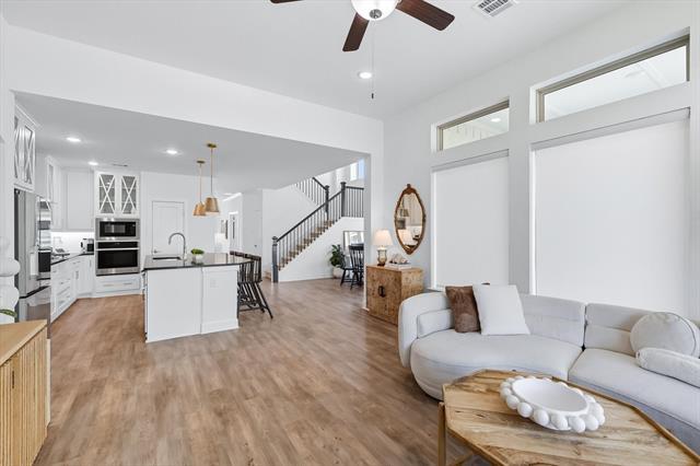 Welcome Home! This beautiful 4 bedroom, 3 bath home is located in the award-winning Harvest community of Argyle. From the moment you step through the 8 foot front door, you’ll notice the thoughtful design and inviting spaces that make this home both functional and warm. The open concept layout features a spacious living room with a cozy fireplace and a kitchen designed for both everyday living and entertaining alike. GE stainless steel appliances, a 5 burner gas cooktop, stackable oven and microwave, large center island, and custom flat-panel stained cabinetry create a space that is as stylish as it is practical. Upstairs, you’ll find a versatile game room, home media room, and generously sized bedrooms, while the enclosed study with French doors offers the perfect work-from-home retreat. The owner’s suite includes a soaking tub, dual sinks, framed shower, and walk in closet for ultimate comfort. Additional features include smart home technology with integrated thermostats, lighting controls, electric blinds; recesses and decorative lighting; granite and marble counters; Moen fixtures; and energy efficient windows. Step outside to enjoy the covered patio overlooking your backyard with a playset included! Full brick exterior and a 2 car garage with keypad entry. Living in Harvest means more than just a home, it’s a lifestyle. Resort style pools, fitness center, splash pad, parks, walking trails, stocked fishing lake, dog park, Farmhouse Coffee & Treasures cafe, and year round community events are all right at your doorstep. Plus, onsite Argyle ISD schools are within walking distance. 1508 Moss Trail offers the perfect blend of comfort, convenience, and community in one of North Texas’ most sought after neighborhoods.