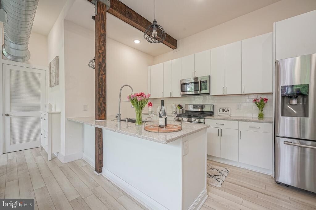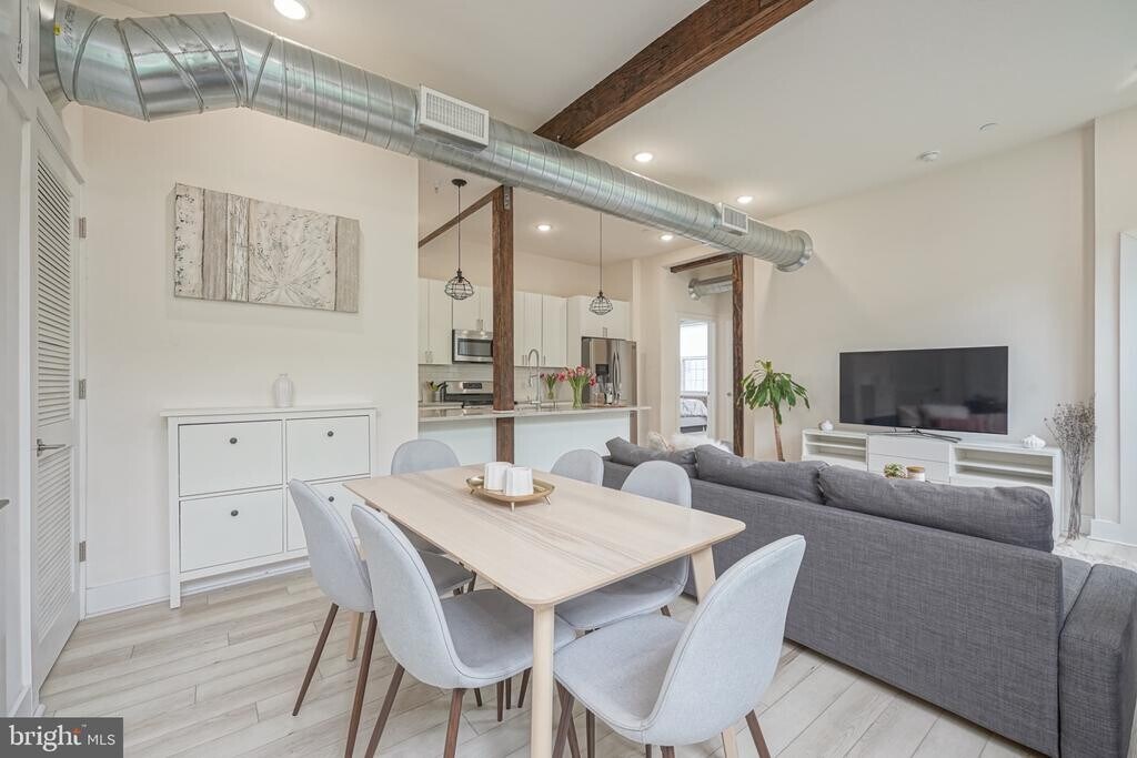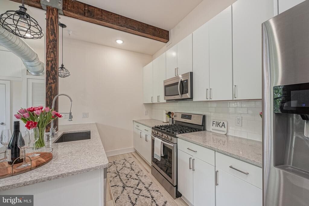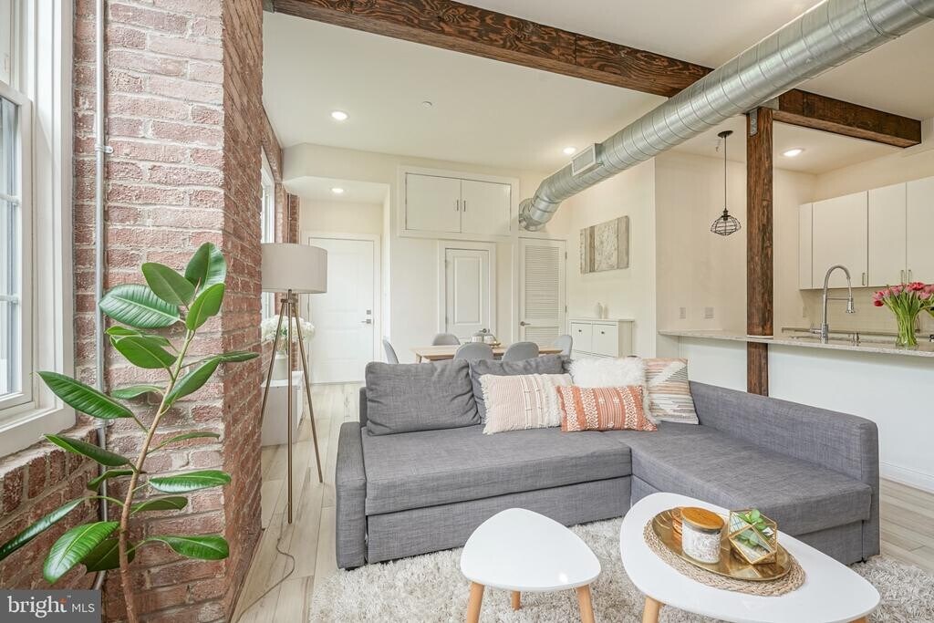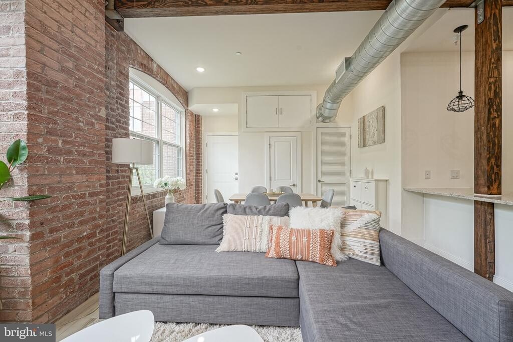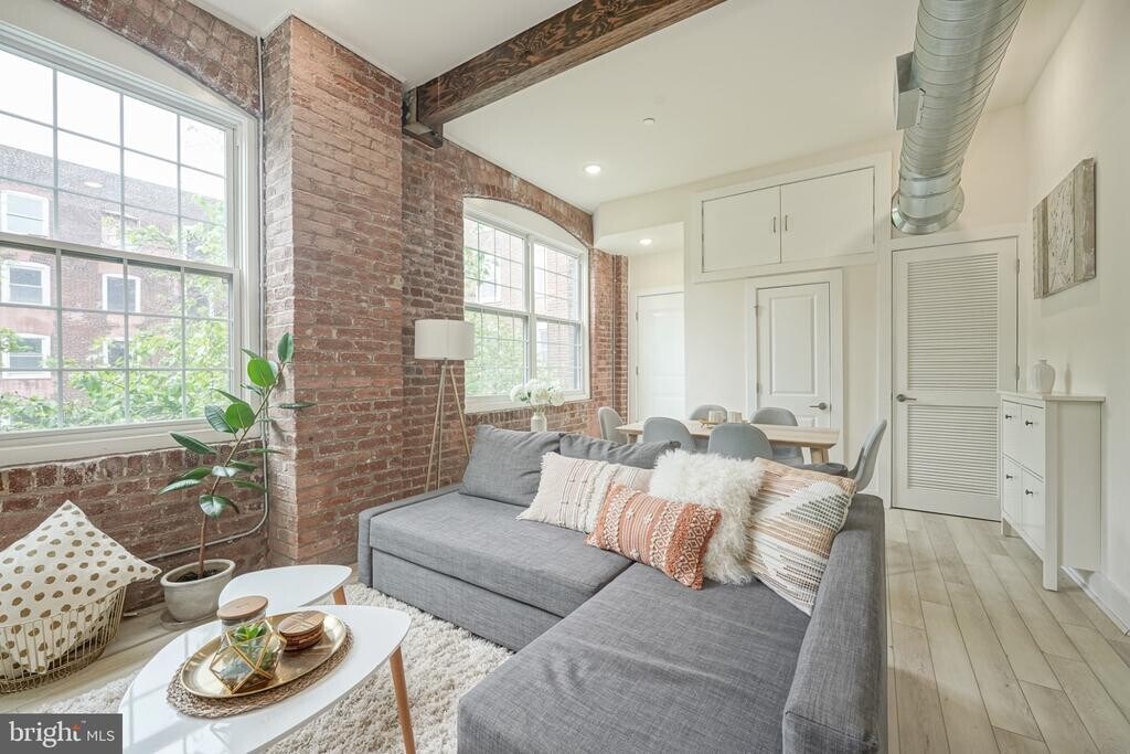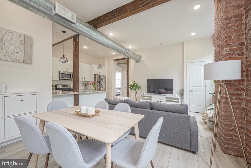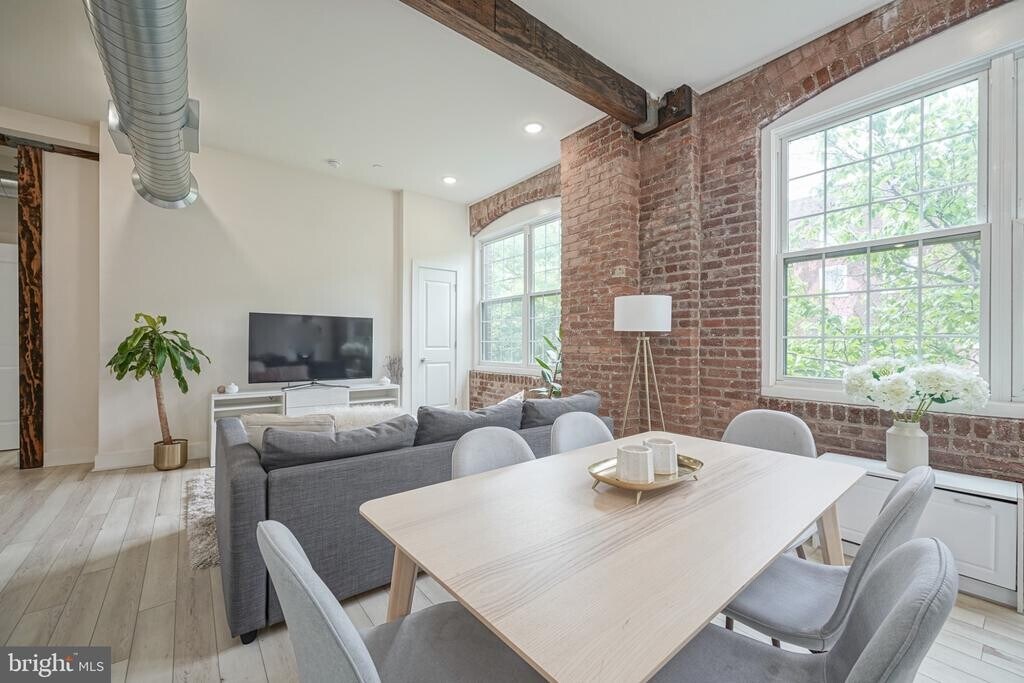 Discover the comfort and ease of living at 1508 N. Mascher Street #9, a 2-bedroom, 2.5-bath corner condo in the historic Spencer Industries building, just steps from the energy of Frankford Avenue and Fishtown. Located on the third floor with elevator access, this bright and airy home is filled with natural light from oversized south- and east-facing windows, with original exposed brick, wood beams, and 12-foot ceilings adding character and a true loft-style feel. The open living and dining area features attractive, low-maintenance flooring and is perfect for relaxing or entertaining. A convenient powder room and an in-unit laundry closet with Samsung washer and dryer make day-to-day living easy. The kitchen is well designed with granite countertops, stainless steel Samsung appliances including a dishwasher, and ample cabinet space for both cooking and storage. The primary bedroom offers a peaceful retreat with great light, a walk-in closet, and an en-suite bath with dual vanity and glass-enclosed shower. The second bedroom also includes its own full bath and a spacious closet, ideal for guests, roommates, or a home office setup. Street parking is typically easy in this area, and the location is hard to beat. Positioned between Fishtown and Northern Liberties, you are surrounded by some of the city’s best dining, shopping, and nightlife. With a Walk Score of 94, most daily errands can be done on foot.