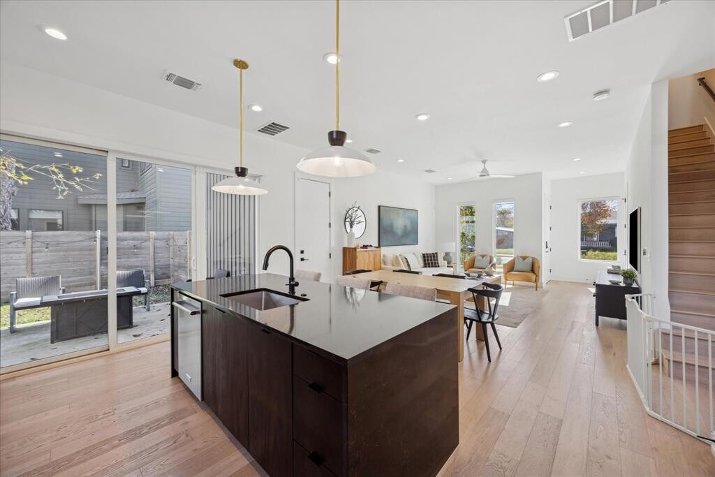 Stylish, multi-level home offering a flexible and thoughtfully designed layout in a highly desirable Austin location. The first level features an open-concept living room, dining area, and kitchen, creating an inviting space for everyday living and entertaining, with direct access to a fully fenced backyard. The second level includes a spacious primary suite with dual-vanity en suite bath, a secondary bedroom with its own en suite bathroom, and a convenient laundry closet. The third level offers an additional living area and a third bedroom with en suite bath, ideal for a guest suite, home office, or flex space. Contemporary updates, abundant natural light, and clean modern finishes are found throughout. Ideally located near some of Austin’s best dining, coffee shops, entertainment, and outdoor spaces, with easy access to major roads for a quick commute around the city.