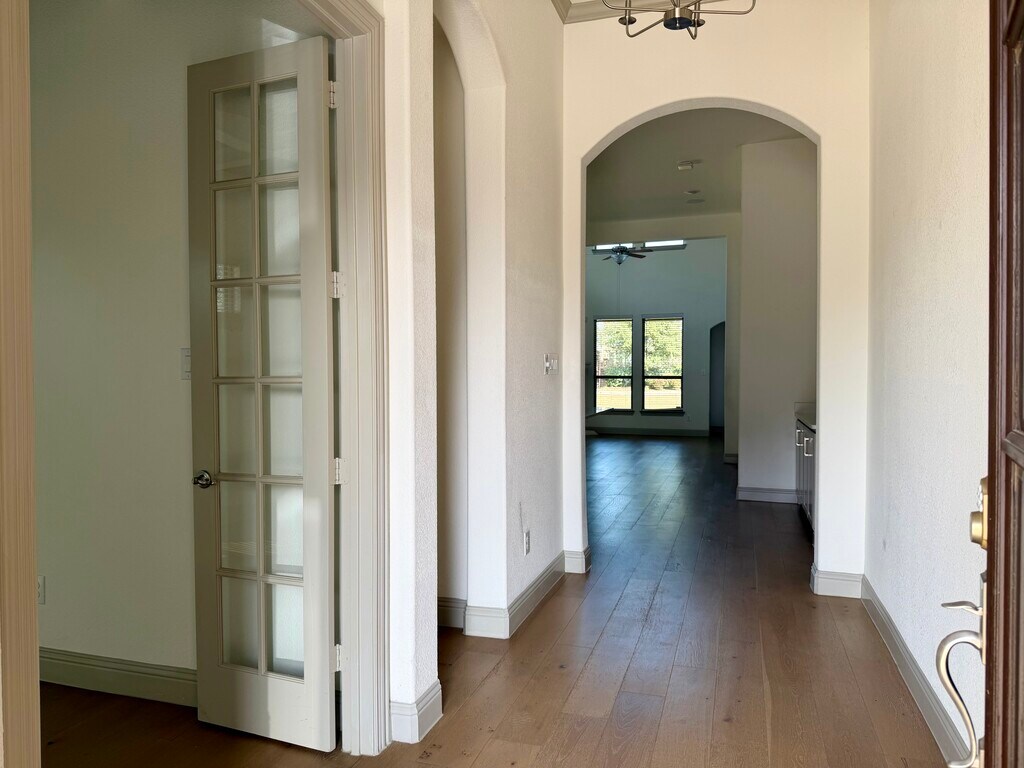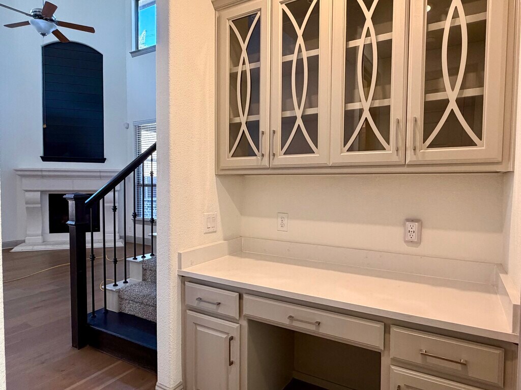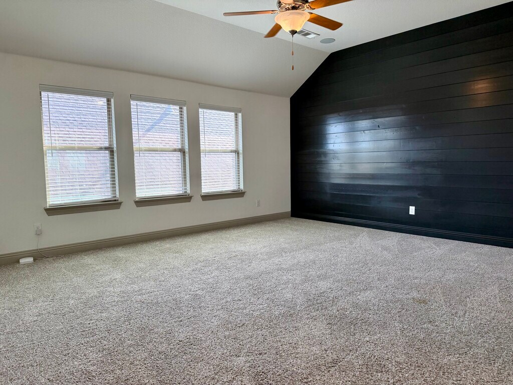 Former Coventry Homes Model Home! Welcome to this well-maintained single-family rental in desirable Canyon Falls! This inviting 4-bdrm 3.5-bath property boasts an open floor plan with soaring ceilings and abundant natural light, ideal for comfortable everyday living. The kitchen is a chef's delight, featuring a breakfast bar, quartz counters, upgraded cabinetry, a large walk-in pantry, and stainless steel appliances. The main floor primary suite is a true retreat, featuring an ensuite bathroom with a walk-in shower, garden tub, dual vanities, and a walk-in closet. Two additional bedrooms on the main floor share a full bathroom and a built-in desk area. Upstairs, you'll find a large bonus room with another bedroom and a full bathroom. The home also boasts a large office, half-bathroom, dedicated laundry room, 3-car tandem garage, and full outdoor kitchen. Community amenities include pools, a splash pad, a state-of-the-art fitness center, clubhouse, dog park, stocked fishing ponds, playgrounds, and miles of walking trails. Owner to pay HOA fees, front yard maintenance, and internet. Renter pays all other utilities. No smoking. One year lease required.