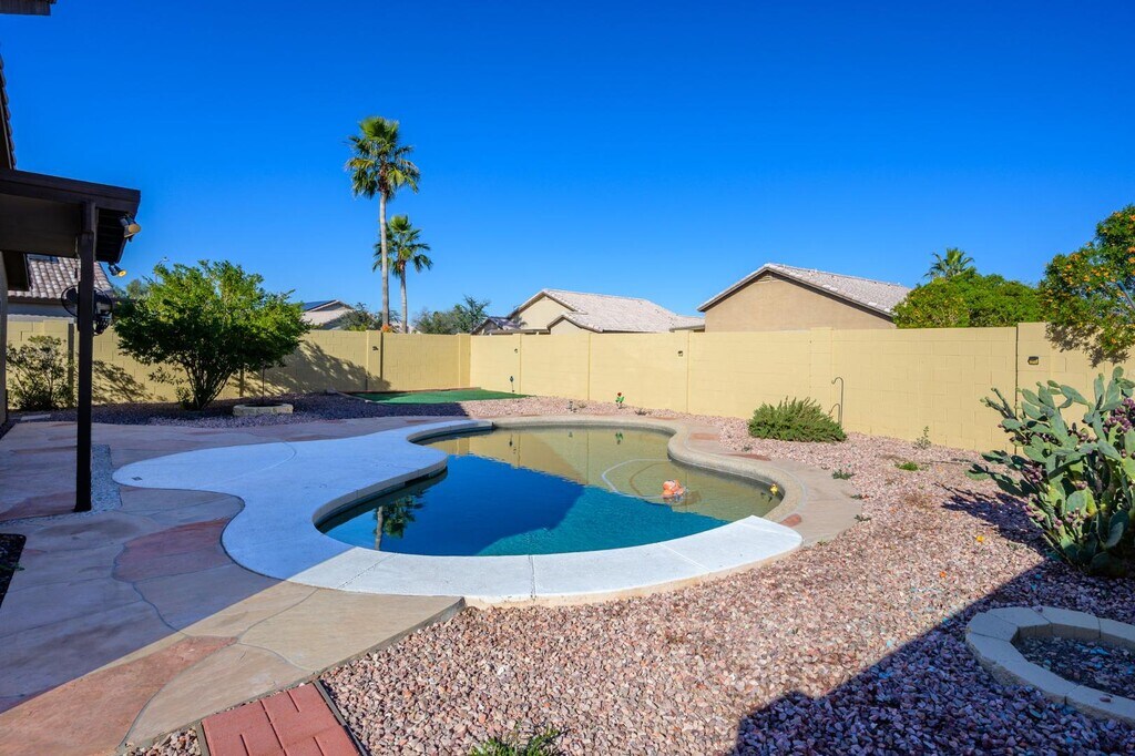 Discover your dream rental in this stunning Spanish architectural masterpiece! From the moment you arrive, you’ll be captivated by its exquisite details and substantial utility savings with the solar energy system. Step through the custom gate into your cozy private courtyard and into the expansive great room, featuring soaring vaulted ceilings and breathtaking views of your private pool. This layout includes 3 spacious bedrooms and 2 elegant bathrooms, with a luxurious primary suite boasting a sitting area—perfect for morning coffee!The Office Nook is ideal for studying or remote work. Enjoy the backyard oasis with a refreshing play pool, multiple seating areas, and a wood-burning firepit. With private surroundings and walking distance to the Bullard Wash Extension, this home isn’t just a place to live; it’s a perfect retreat waiting for you!