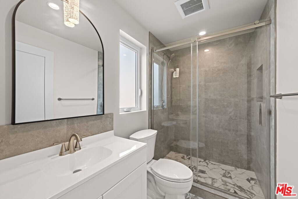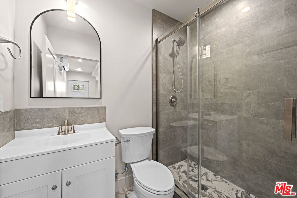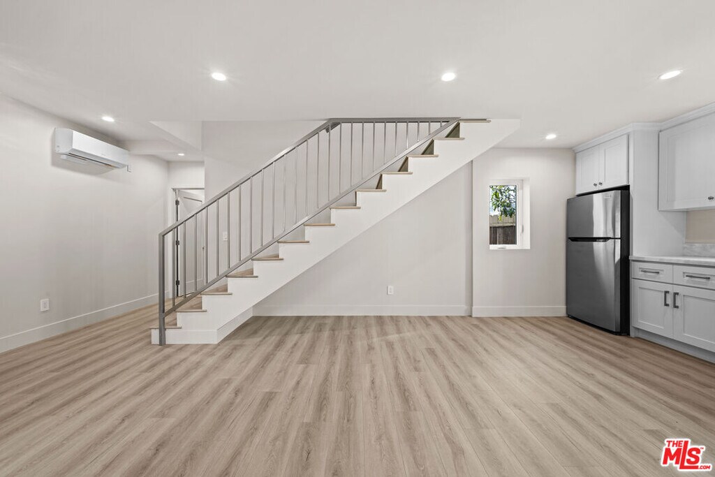 This newly renovated 2-bedroom, 2-bath ADU offers a bright open-concept layout with clean contemporary finishes throughout. The updated kitchen features white cabinetry, stainless steel appliances, and ample counter space, flowing seamlessly into the living area. The bathroom is thoughtfully designed with a sleek walk-in shower and modern fixtures. Light wood flooring, recessed lighting, and a private feel make this unit both stylish and functionalideal for comfortable, modern living. MLS# 26641483