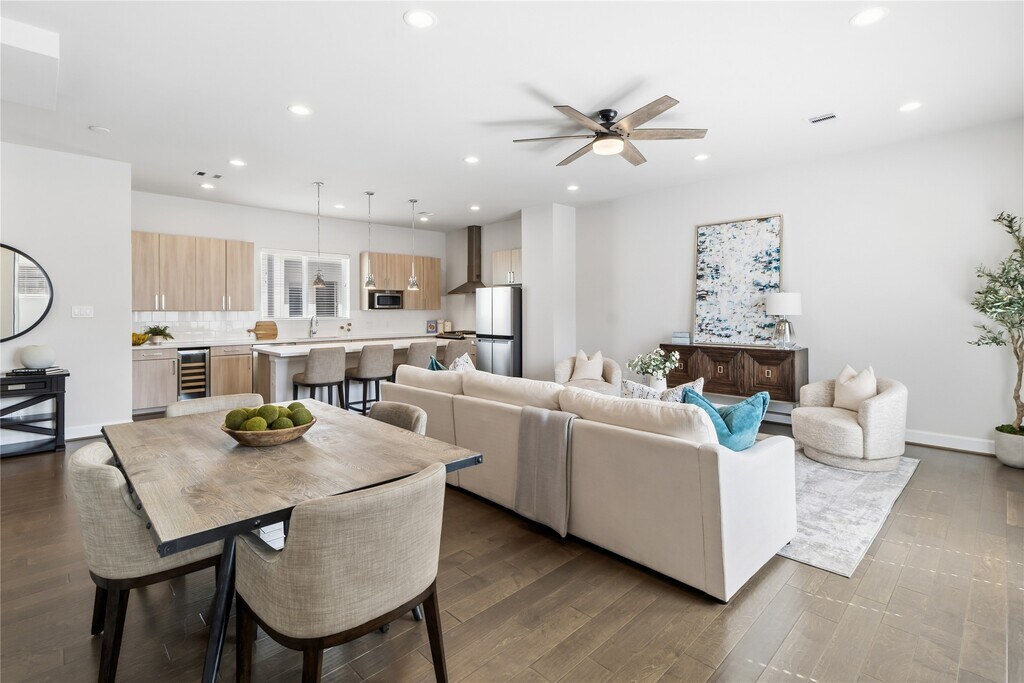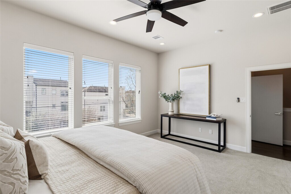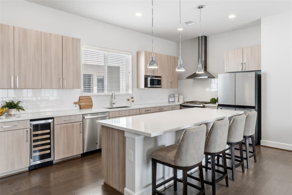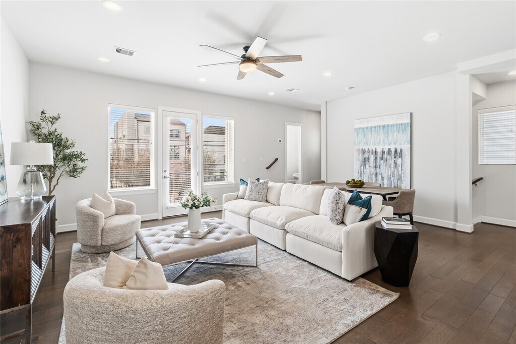 Welcome home to this elegant 3-bedroom,3.5-bathroom townhome conveniently located in the heart of Midtown Houston which offers the perfect blend of modern design and convenience. Just steps from Elizabeth Baldwin Park and the Light Rail Red Line,this home offers effortless access to the Medical Center,Downtown,and major highways like 288 and 59. Inside,you’ll find modern designed finishes,tall ceilings,and spacious bedrooms,each with walk-in closets. The primary suite features a spa-like ensuite with a freestanding tub and walk-in shower. Enjoy the convenience of a first-floor guest bedroom/office space with ensuite bathroom,a chef-inspired kitchen with a gas range and beverage fridge,and outdoor living with an exterior balcony and fenced-in front yard. This gated community also provides a two-car garage and guest parking. Experience luxury and convenience in the heart of Midtown—this home has it all! MLS# 67792382