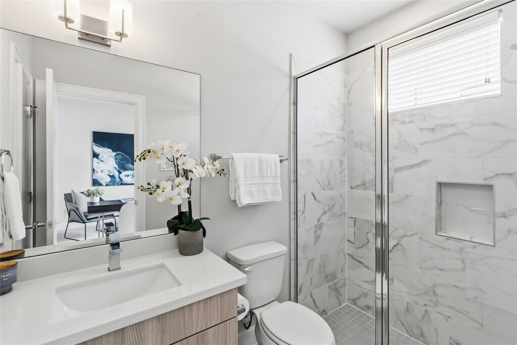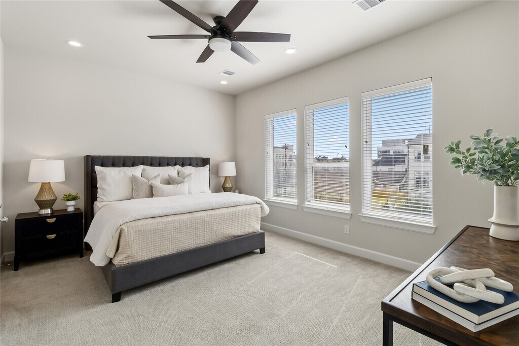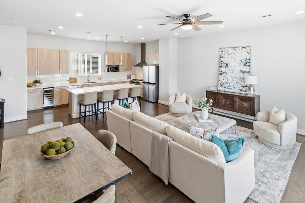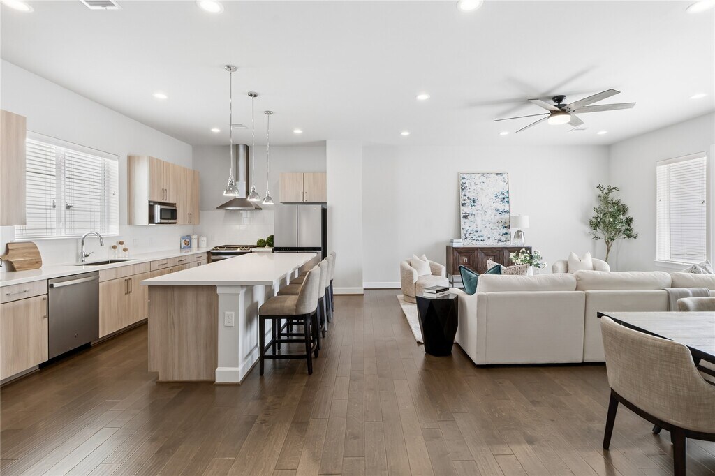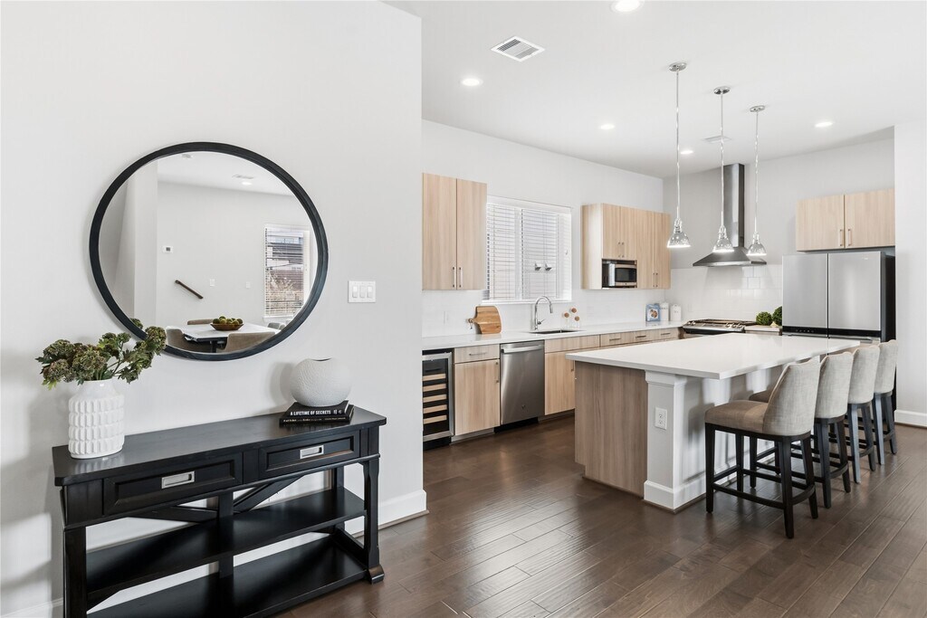 Welcome home to this elegant 3-bedroom,3.5-bathroom townhome conveniently located in the heart of Midtown Houston which offers the perfect blend of modern design and convenience. Just steps from Elizabeth Baldwin Park and the Light Rail Red Line,this home offers effortless access to the Medical Center,Downtown,and major highways like 288 and 59. Inside,you’ll find modern designed finishes,tall ceilings,and spacious bedrooms,each with walk-in closets. The primary suite features a spa-like ensuite with a freestanding tub and walk-in shower. Enjoy the convenience of a first-floor guest bedroom/office space with ensuite bathroom,a chef-inspired kitchen with a gas range and beverage fridge,and outdoor living with an exterior balcony and fenced-in front yard. This gated community also provides a two-car garage and guest parking. Experience luxury and convenience in the heart of Midtown—this home has it all! MLS# 67792382