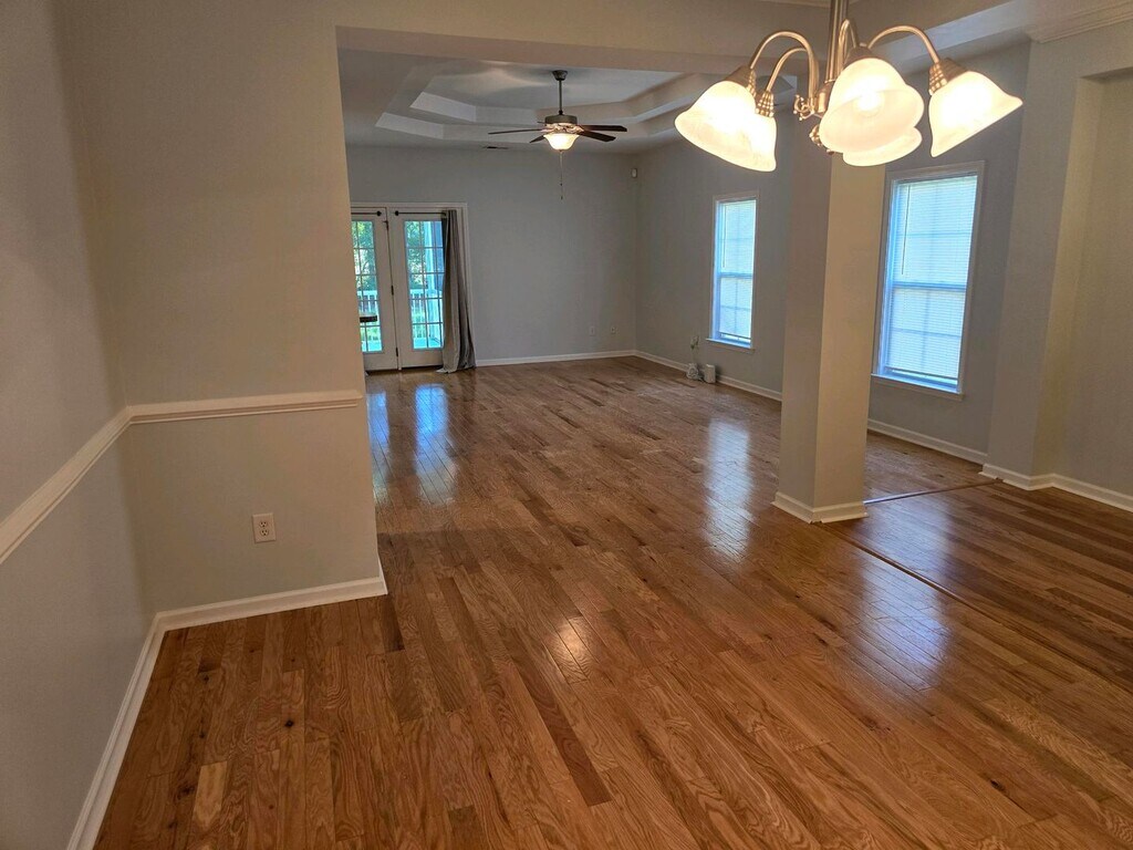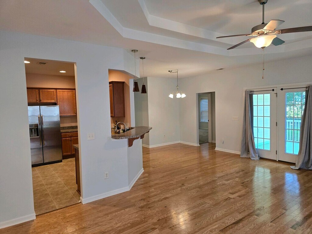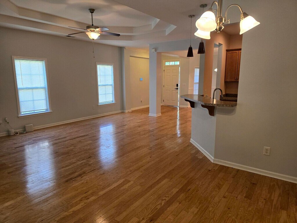 Welcome to your dream home! Nestled in a tranquil neighborhood, this delightful 3 bedroom, 2 bath residence offers the perfect blend of comfort, convenience, and natural beauty. Imagine waking up each morning to the soothing sounds of nature and enjoying the peaceful ambiance of a community park right in your backyard. Home features open floor plan with living room, separate dining room and breakfast area. Hardwood floors throughout the main living areas with carpeted bedrooms. *Lawn care and internet are provided*