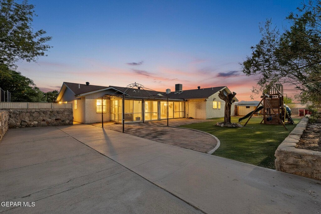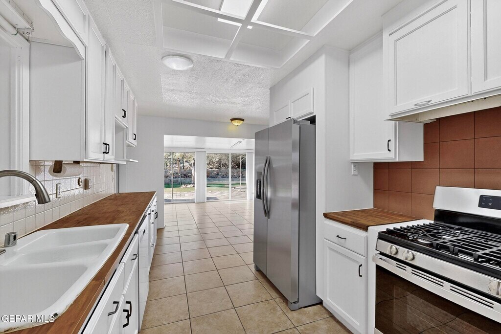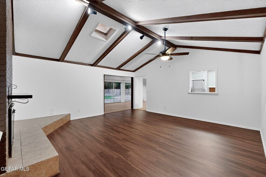 Spacious 2,400 sq ft single-story home located in the highly desirable Richmar subdivision on the Westside. This 4-bedroom residence offers generous living spaces,refrigerated air,tile and wood flooring throughout,and incredible city-light and mountain views that highlight its prime location. The great room features exposed beam ceilings,skylights that bring in natural light,and a fireplace that blends modern updates with the home's original character. A large kitchen overlooks the expansive backyard—an outdoor space with mature landscaping,stone walls,multiple sitting areas,turf sections,and room to entertain or relax while enjoying the scenery. Located in a well-established community near UTEP,hospitals,dining,shopping,and quick I-10 access,this home offers both convenience and an elevated lifestyle. Rare to find this much square footage on a single level in such a sought-after pocket of the city.