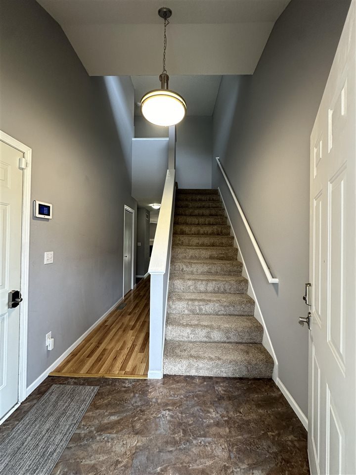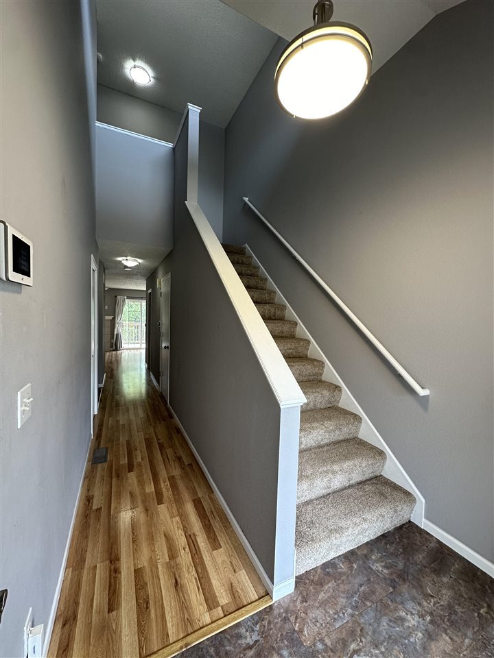 Conveniently located westside townhouse on the bus route. Main floor has a welcoming two-story foyer,open galley kitchen with breakfast bar,large living room with gas fireplace and powder room. The living room offers double sliding glass doors which lead to a nice-sized deck perfect for entertaining or relaxing. The two bedrooms upstairs are well-appointed with vaulted ceilings and ample closet space next to a full bathroom. The walkout lower level boasts brand-new carpet,another full bath,the laundry room,and a generous family room. The attached one car garage is deep,providing plenty of additional storage space.