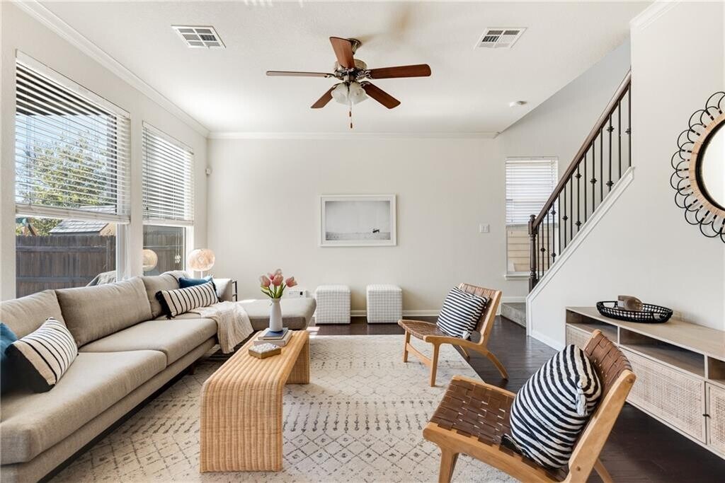 Looking for a warm and welcoming place to call home in South Austin? This cozy 3-bedroom, 2.5-bath home in the friendly Sage Meadow neighborhood has everything you need to settle right in. With soaring ceilings, big windows, new carpet, partial new paint and an open layout, the living spaces feel bright and inviting. The kitchen—complete with granite counters and a breakfast bar—flows right into the dining and living areas, making it easy to cook, gather, and connect. Upstairs, you’ll find all three bedrooms plus a versatile flex space—perfect for a home office, playroom, or reading nook. The primary suite is spacious and peaceful, with its own bathroom and walk-in closet. Two additional bedrooms provide plenty of space for family, guests, or hobbies. Outside, a covered patio overlooks the private, fenced backyard, ideal for quiet mornings with coffee or relaxed evenings with friends. A two-car garage and full sprinkler system add extra convenience. Fridge and clothes washer/dryer can come with the lease. Best of all, you’re close to everything! Just minutes from Mopac, I-35, and Southpark Meadows shopping, dining, and entertainment. Local favorites like Moontower Saloon and Armadillo Den are even within walking distance. This home is all about comfort, convenience, and easy South Austin living—ready for you to make it yours!