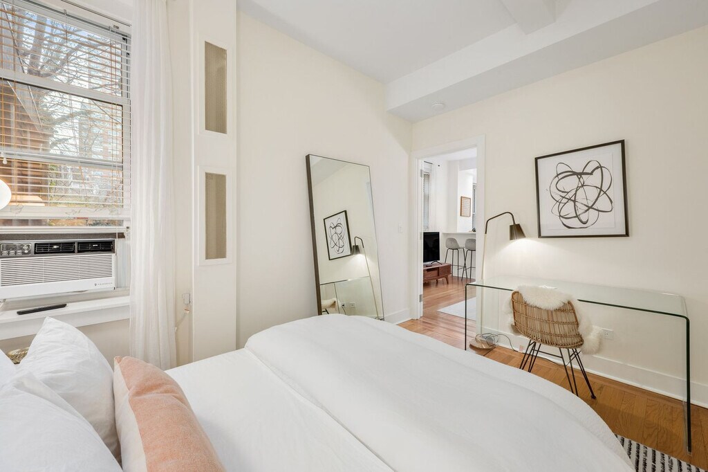 Retreat to this quiet 1-bedroom apartment in the heart of the Upper East Side. Featuring a fully stocked kitchen with a breakfast bar and a comfortable living space, this apartment is located in a luxury, 24-hour doorman building. Just a few blocks from Central Park, you have the best of the Upper East Side at your doorstep. The apartment offers a stocked kitchen with cooking essentials including a toaster, kettle, coffee machine, blender, and coffee/tea. Enjoy entertainment on the smart TV and stay connected with high-speed Wi-Fi. The bedroom features a queen-sized bed, and additional amenities include a humidifier, handheld steamer, bedside wireless charging station, and a stocked bathroom with towels, toiletries, and paper products. Sustainable cleaning and personal care products are also provided. Pets are allowed on a case-by-case basis with prior approval. A one-time non-refundable pet fee of $500 will be charged if your pet is approved. This does not apply to registered service animals. Located in the prestigious Carnegie Hill neighborhood on the Upper East Side, this area is known for its affluence with stately townhouses, fine dining, and iconic streets like Fifth Avenue, Park Avenue, and Lexington Avenue. Nearby attractions include the Cooper Hewitt, Smithsonian Design Museum, the Museum Mile with the Museum of the City of New York, the Guggenheim Museum, The Africa Center, and the Metropolitan Museum of Art. The apartment is conveniently situated between Central Park and Carl Schurz Park. Subway Line 6 is a 4-minute walk to the 77th Street Station, and Subway Lines 4/5/6 are a 6-minute walk to the 86th Street stop. Bus Lines M15-SBS, M31, and M79-SBS are nearby, and free street parking is available after-hours with an Icon indoor parking garage located one block away. The apartment must be rented for a minimum of 30 days. An additional cleaning fee of $150 applies if the apartment is left in poor condition. The apartment is accessible from the service corridor.