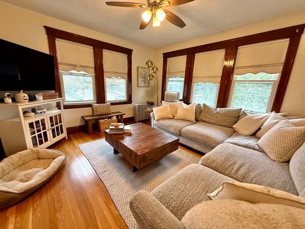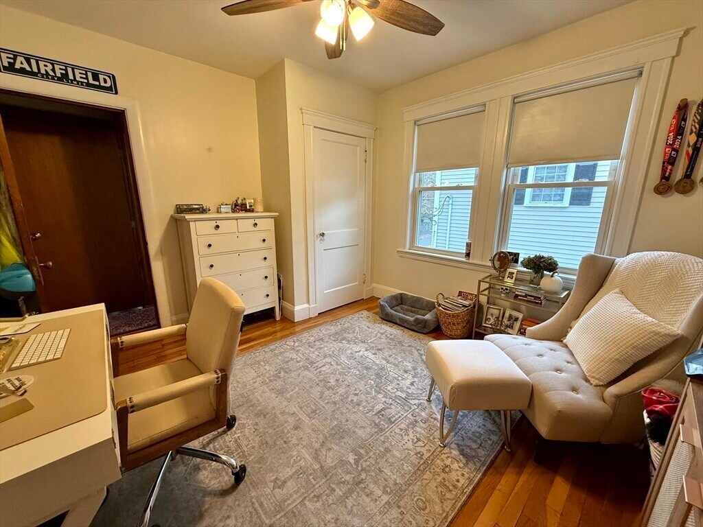 Available January 1st! Bright and inviting 3(or 2 with office) bedroom,1 bathroom apartment on the second floor of a well-maintained two-family home offering flexible living options - use as a full 3 bedroom OR configure as 2 bedrooms with home office to suit your needs. This sun-filled apartment features beautiful hardwood floors throughout and an updated kitchen equipped with stainless steel appliances. The updated bathroom adds modern comfort,while convenient in-unit washer and dryer eliminates laundry day hassles. Enjoy your morning coffee in the charming rear sunroom overlooking the shared backyard,perfect for relaxation and bringing the outdoors in. Abundant natural light flows throughout the home,creating a warm and welcoming atmosphere. One assigned parking space provides convenient off-street parking. This unit combines modern updates with practical amenities in a great residential setting. Pets negotiable. Required up-front: First month's rent and security deposit. MLS# 73450124