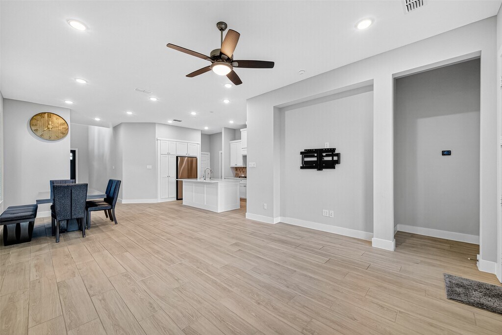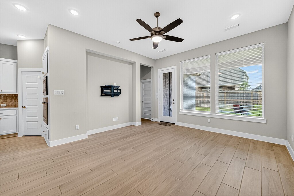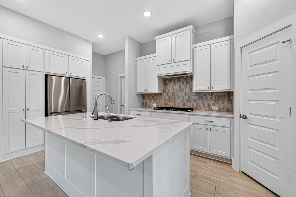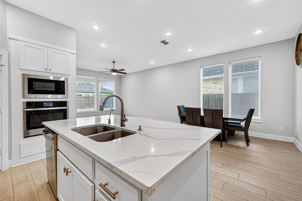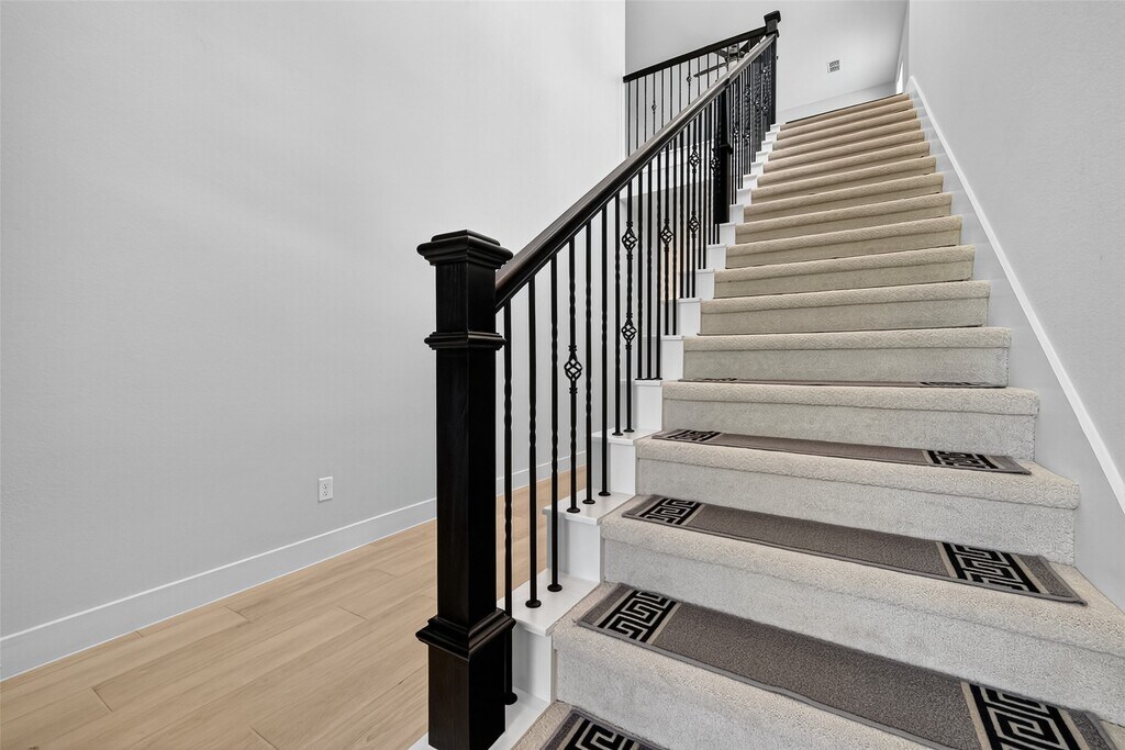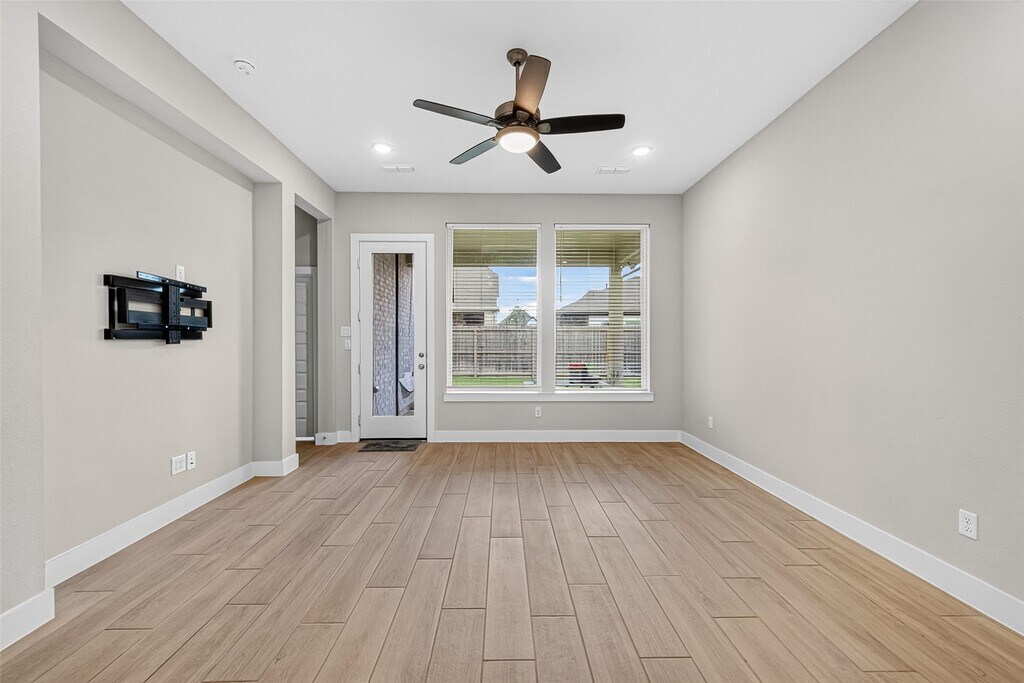 Beautiful two-story brick home located on a cul-de-sac in the Harvest Green community. The exterior highlights a light brick façade,landscaped front yard,covered entry,and attached two-car garage. Inside,the home opens to a tall foyer with wood-look tile flooring,iron spindle staircase,and abundant natural light. The open-concept main level features a spacious living area,dining space,and a modern kitchen with a large island,white cabinetry,tile backsplash,and stainless steel appliances. Multiple large windows overlook the backyard,complemented by covered and open porch areas. Upstairs and downstairs layouts provide generously sized rooms and flexible living options,while the private fenced backyard offers outdoor enjoyment. MLS# 92620452