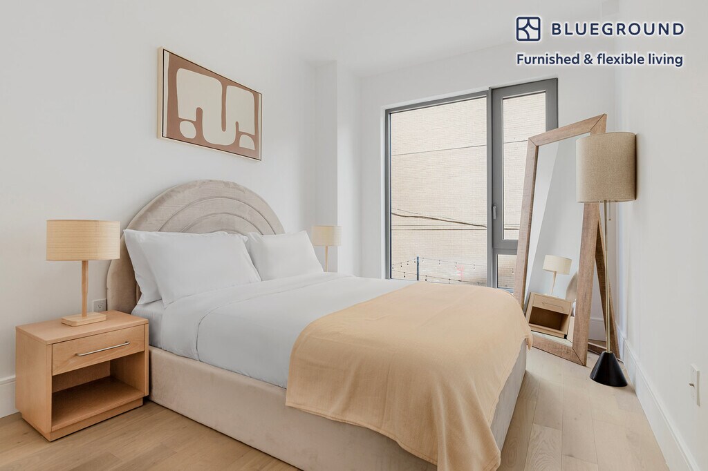 Show up and start living from day one in New York with this stylish two bedroom Blueground apartment. You’ll love coming home to this thoughtfully furnished, beautifully designed, and fully equipped Fort Greene home. (ID #NYC2175) The advertised rate of $5,690/month is the lowest available price, based on a 11 month(s) and 29 day(s) stay with a move-in date of April 19, 2026. Rates vary depending on the duration of stay, season, and other parameters. For exact pricing and additional pricing components, please visit our website and enter your desired move-in and move-out dates. The rate is applicable when billed upfront; it can be higher if billed in multiple payments. Brokers are welcome to reach out. Were you looking for an unfurnished lease? Try Blueground instead and upgrade from unfurnished to furnished living: - Furnished at rates comparable to unfurnished - No setup or furniture costs - save thousands - Move-in ready - save time, just bring your suitcase Designed with you in mind As with any Blueground apartment, you’ll find a thoughtfully designed space complete with beautiful furniture and a fully equipped kitchen in this two bedroom property. And, thanks to our superior quality mattresses, luxury linens, and towels, you can relax knowing you’ll always feel comfortably at home. When you’re ready for some fun, you can take in the New York vibes or bring the entertainment to you with the premium wireless speaker or smart TV. This apartment also offers in-apartment laundry. Sleeping arrangements Queen Bed, 63in/160cm Queen Bed, 63in/160cm Amenities Building amenities unique to this two bedroom apartment include an on-site: - Dryer - Elevator - Washing machine - Media room - Pets allowed Arrival and ongoing support The entire apartment is yours to enjoy! Throughout your stay, you’ll have access to our Client Experience team through the Blueground App. You can schedule additional cleanings, submit maintenance requests, and view our neighborhood recommendations with just a few taps. We’ll share all details upon confirmation of your stay. Ideally Located Historic Fort Greene Brooklyn is located in the heart of downtown Brooklyn. The neighborhood is characterized by beautiful brownstone buildings and hip bars and cafes. There’s a varied restaurant scene, with everything from African and Caribbean food to vegan diners. Barclays Center, a massive arena that hosts concerts and sports events, is a neighborhood landmark as well as the anchor for a variety of shops and restaurants, including a Target. Another local gem is sprawling Fort Greene Park, where you can sprawl out in the sunshine or get in some exercise. You’re also a short walk away from the Brooklyn Academy of Music, a great venue for arts performances and indie films. Fort Greene is served by several subway lines for easy access into Manhattan. Other things to note Building amenities may have an extra cost. This Blueground apartment has flexible lease options, allowing you to book it for one month, a year, or more. Pets are welcome, though weight limits and breed restrictions apply and may incur fees. Brokes CYOF. We take great pride in ensuring every photo displayed is shot in our own units with our actual furnishings. That said, we regularly refresh our decor and furniture arrangement, which may differ from what’s pictured. [SI]