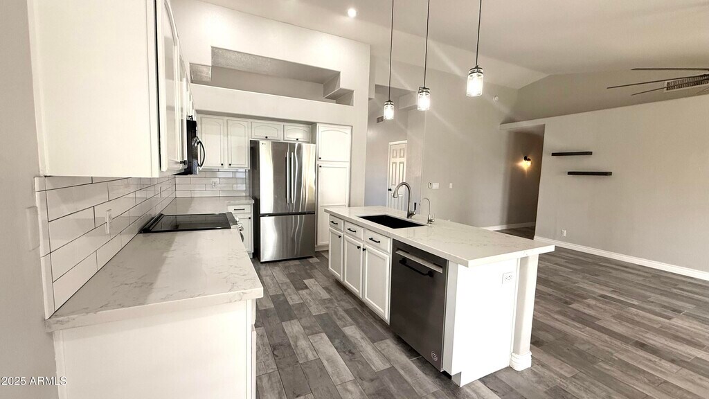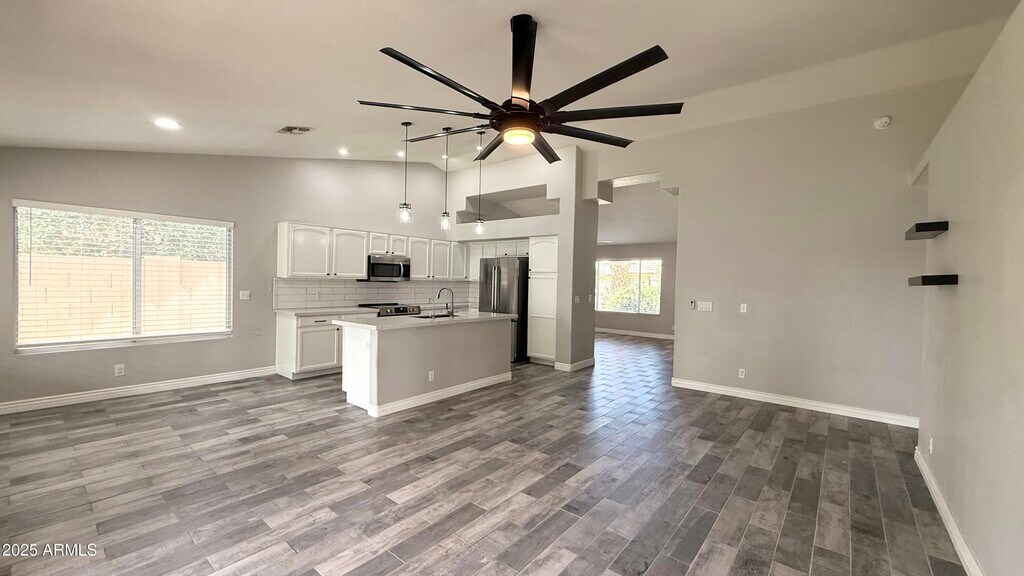This 1,702 SQ FT single-story home offers 3 bedrooms and 2 bathrooms in Gilbert's desirable Rancho Del Verde Unit 2 neighborhood. The inviting kitchen comes complete with a brand-new LG refrigerator,dishwasher,microwave,oven,and a reverse osmosis system,providing modern convenience and style. Open and spacious living areas feature brand-new,beautiful tile flooring throughout,abundant natural light,and an XL doggy door suitable for any size pet. The primary suite boasts a walk-in closet,while the remaining bedrooms are comfortably sized to fit your needs. A dedicated laundry room includes the washer and dryer for added ease. Parking is available with a 2-car garage. The backyard is a true retreat with turf installed in the front and back,a grassy play area,a fenced yard,and a s