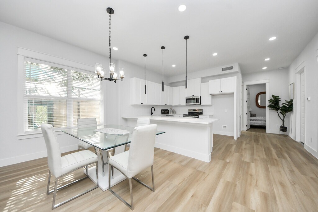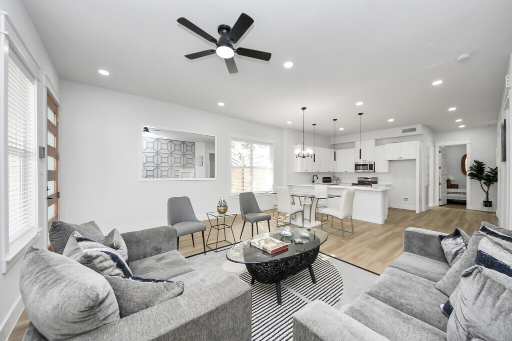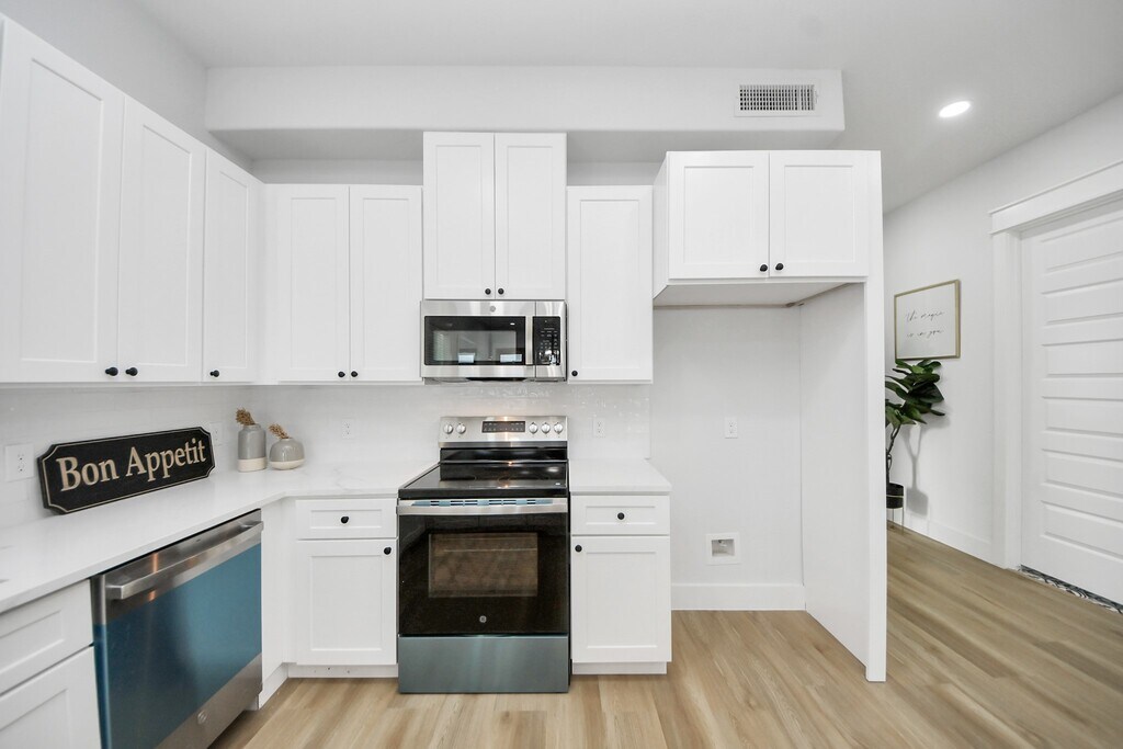 FOR LEASE INDEPENDENCE HEIGHTS! This modern duplex offers a beautifully designed 1,350 SQFT unit with 2 bedrooms and 2.5 baths. The open-concept kitchen and living area create the perfect space for entertaining or everyday living. Premium finishes include luxury vinyl plank flooring (NO carpet!),sleek Calacatta quartz countertops,and shaker cabinetry with soft-close drawers. All appliances are included—refrigerator,washer,and dryer—for a truly move-in ready experience. Enjoy the security of a private gated entry and the convenience of being just minutes from The Heights,Downtown,the Medical Center,and Houston’s top dining and retail destinations. Don’t miss your chance to lease this stylish and well-located home today! MLS# 97052291