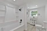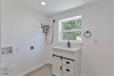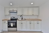 Shopping for that picture-perfect white picket fence home? Look no further! This beautifully renovated 3-bedroom, 1-bathroom gem offers timeless charm with modern upgrades throughout. Nestled behind a large, fully fenced perimeter, this home exudes curb appeal with a welcoming brick walkway leading to the front door and fresh white exterior paint that makes it shine. Step inside to discover stunning new luxury vinyl plank flooring that flows seamlessly through the entire home, creating a clean and cohesive look. The heart of the home—the kitchen—boasts fabulous new cabinetry, warm butcher block countertops, a sleek stainless-steel electric range, and recessed lighting that brightens the space beautifully. The spacious bathroom doubles as a convenient laundry area, offering both functionality and comfort. Each bedroom is filled with natural light and offers comfortable living space, perfect for a small family, first-time buyers, or anyone looking to downsize in style. This turnkey home is move-in ready, with every detail thoughtfully updated. Whether you're relaxing in your fenced yard, entertaining guests, or enjoying the charm of your front porch, this property has it all. Don't miss the opportunity to own this adorable home that blends classic curb appeal with fresh, modern updates!