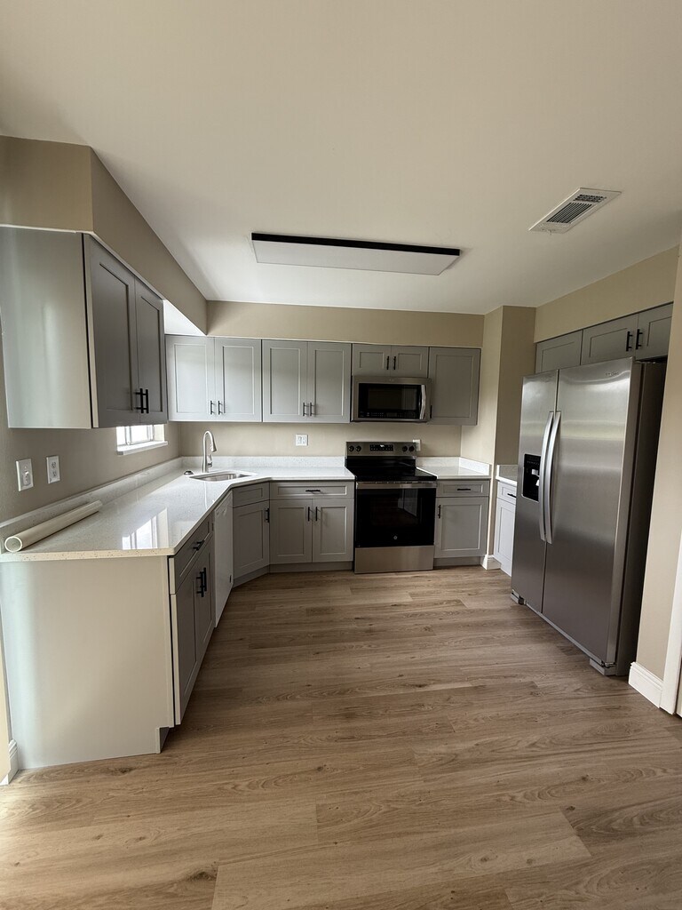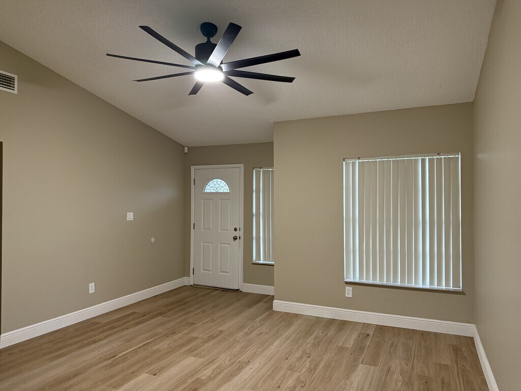 This fully renovated home features brand-new appliances, central air, and washer/dryer hookups. The kitchen is equipped with a refrigerator, disposal, and dishwasher, while the exterior offers a fenced backyard overlooking a pond perfect for privacy and relaxation. Located in a quiet neighborhood, the home is surrounded by all your daily needs, including schools, shopping, major retailers (Walmart, Home Depot, Lowe's), The Loop Mall, and easy access to the Turnpike and Disney.