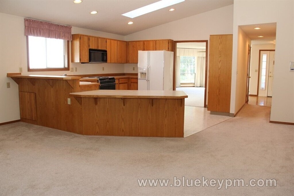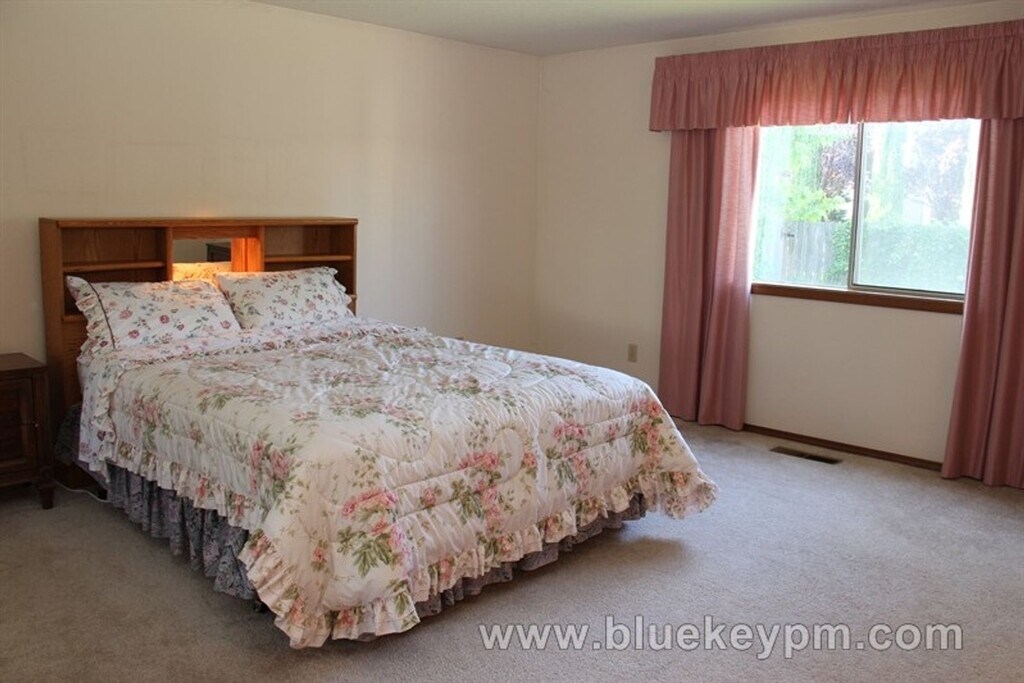 3 bedrooms 1.5 baths single level home with 2 car garage and covered entry. This home welcomes you with a formal living and dining rooms that showcase picturesque floor to ceiling bayed windows and a built-in china hutch. A beautiful holiday entertaining area! A large kitchen with plenty of cabinets and counter workspace is sure to please with its eatery bars and sink that overlook the family room. It is the perfect homework area or space to visit with guests. The spacious family room a gas fireplace and a slider to the backyard. The main shared bathroom has a tub/shower combo and long vanity cabinet. There is a laundry room with sink and overhead cabinets for your storage needs plus washer and dryer hookups for your use. The bedrooms are generously sized with slider mirrored closet doors. The primary suite is large with dual vanity sink dressing area and separate room for the tub/shower combo and toilet. This home has handy closet space in the hallway. Beautifully functional spaces. NO AC. Small pets are welcome to 40 lbs max weight. $800 additional refundable pet fee for each pet. View our VIDEO tour at Applications are online at our website Call Blue Key Property Management, Inc. at to schedule a showing Monday-Friday 9 am to 5 pm. $2495 Rent; $2495 Security deposit, $350 non refundable fee, $55 non refundable screening fee per adult age 18 and older. $800 additional refundable deposit per pet. Renter’s insurance required. For available homes, more information, rental criteria, video tours or online applications visit Blue Key Property Management, Inc. licensed in WA and OR. 1510 SE Solomon Loop, Vancouver, WA 98683