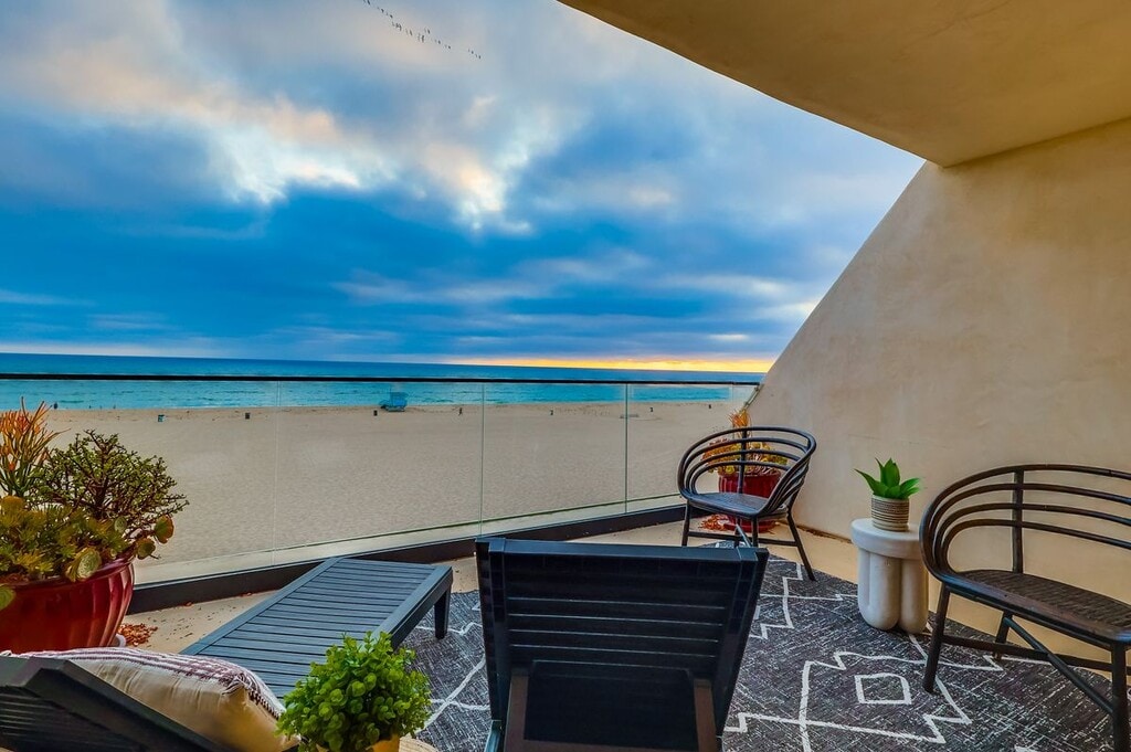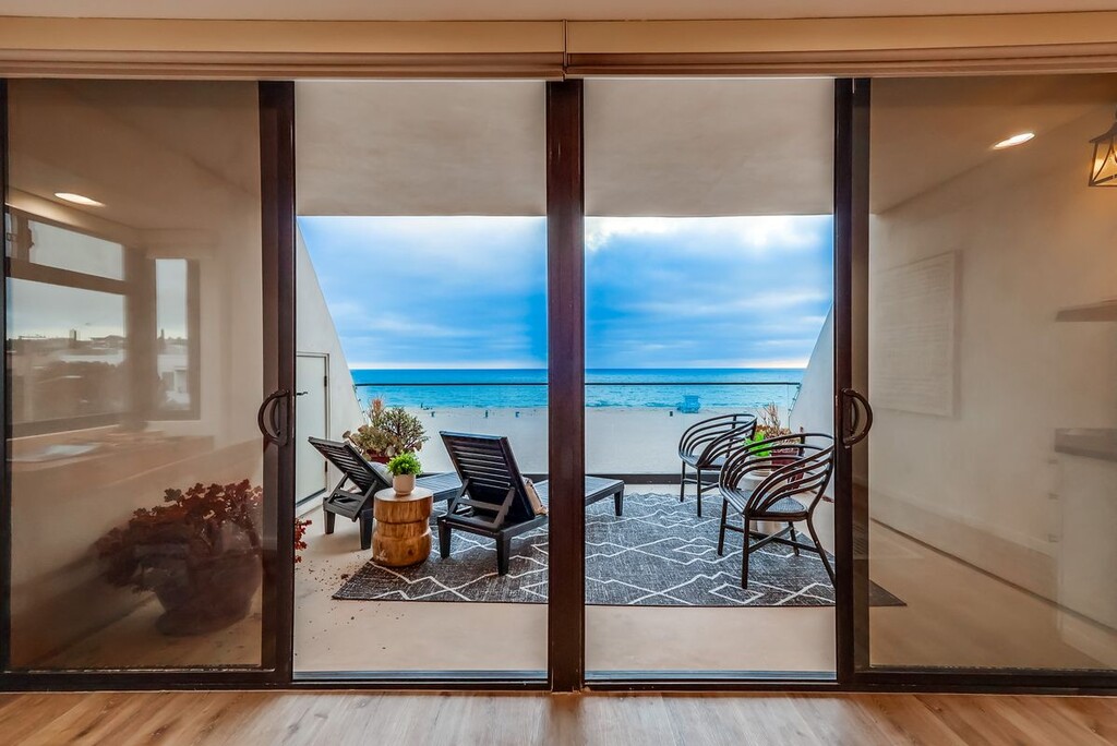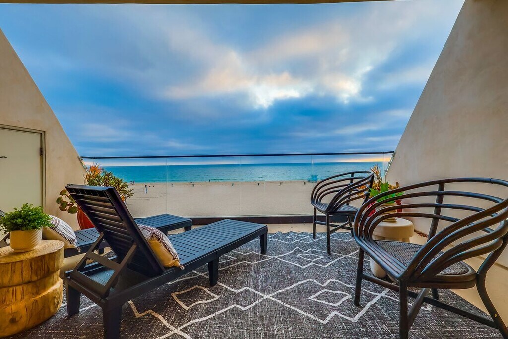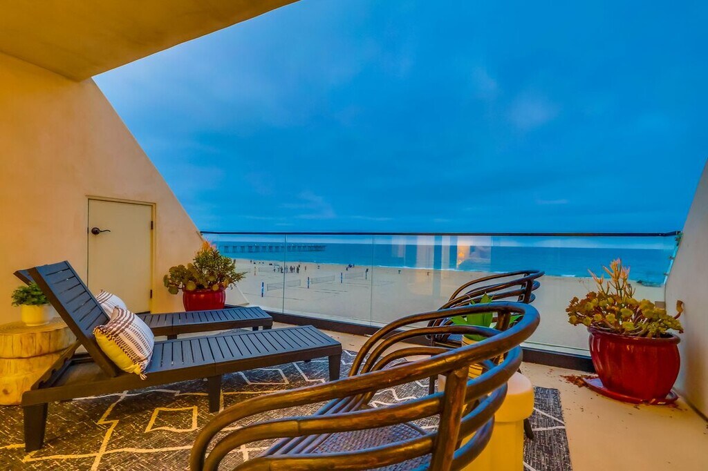 Pet Friendly Coastal Luxury on The Strand! Experience beachside living at its finest in this rare, 2-story penthouse along The Strand in Hermosa Beach. Enjoy unobstructed panoramic views of the Pacific Ocean and coastline from nearly every room. The spacious primary suite offers a private ocean-facing deck, while the open-concept living, dining, and kitchen areas flow seamlessly to a second private deck ideal for entertaining. Both bedrooms feature walk-in closets and custom cabinetry, with a private laundry room situated between them. Modern upgrades include central A/C, new finishes, recessed LED lighting, and sleek, contemporary design throughout. Additional highlights include a gated subterranean garage with two side-by-side parking spaces, private storage, and access to a beautifully maintained 90' common area patio for entertaining or relaxing outdoors. Just steps from the Hermosa Pier, fine dining, shopping, and Noble Park, this is a once-in-a-lifetime opportunity to live the dream in an iconic oceanfront residence.