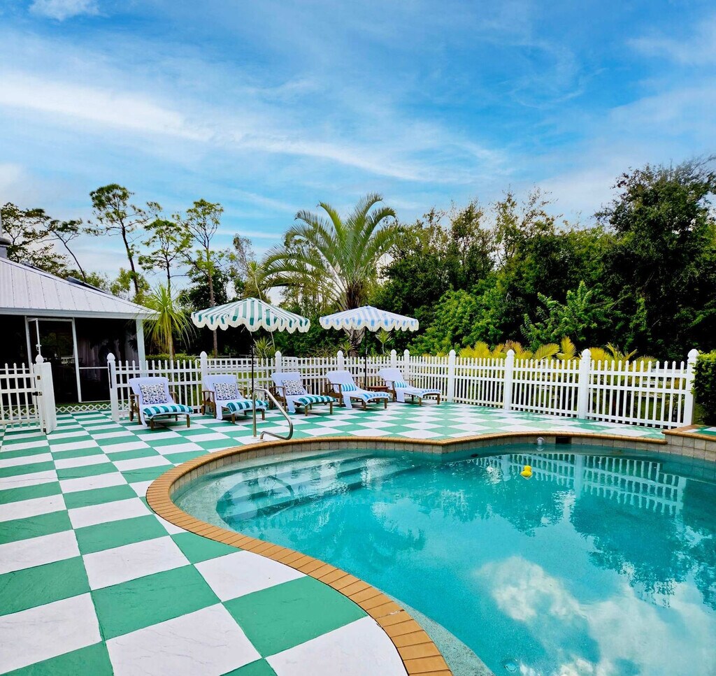 Unwind in this nostalgic detached suite, where you can feel at home in a space that sleeps four with two king bedrooms. Enjoy a full bathroom with dual sinks, 100% cotton, 500 thread count linens and towels, a fully equipped kitchen, and an open-concept living area. The living room features a 55” Smart TV, custom metal ceilings, and bold, vibrant décor. With direct access to a heated pool and jacuzzi, and surrounded by historic oak trees on six lush acres, this suite offers a unique retreat just minutes from beaches, shopping, and the airport. Welcome to Casa Ricardo — a vibrant two-bedroom suite with walk-out access to the heated pool and jacuzzi. Featuring two king bedrooms with memory foam mattresses, a stylish bathroom with dual sinks, and a fully equipped kitchen and living area, this retreat blends comfort with playful, Coca-Cola-inspired décor. Custom metal ceilings and bold design details make it truly one of a kind. High chair and playpen available on request. Set on six lush acres, this suite is part of the Hacienda Hermosa estate, which has been featured on a popular travel show as one of the world’s best rentals. All just minutes from Fort Myers Beach, Sanibel Island, shopping, dining, and RSW International Airport. Florida’s tropical climate means you may see insects, geckos, lizards, or other small critters, even in very clean homes. This is perfectly normal for the area. We do regular pest control, but understand this is part of the Florida experience. Refunds cannot be offered for sightings of insects or wildlife. The property may have scheduled pool or landscaping maintenance during your stay. Quiet hours are between 22:00 and 8:00. [SI]
