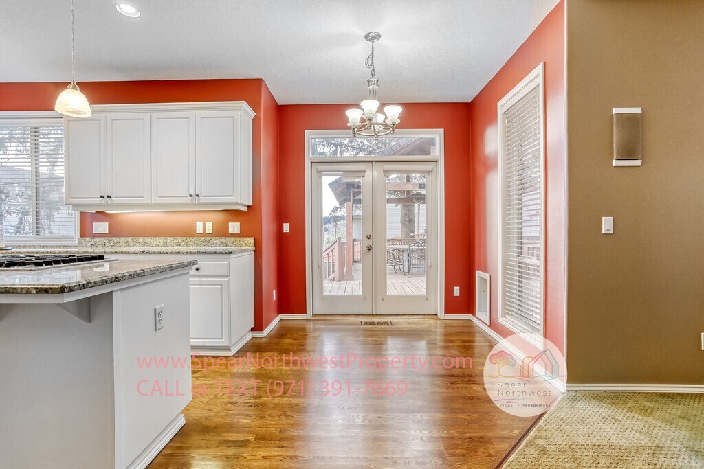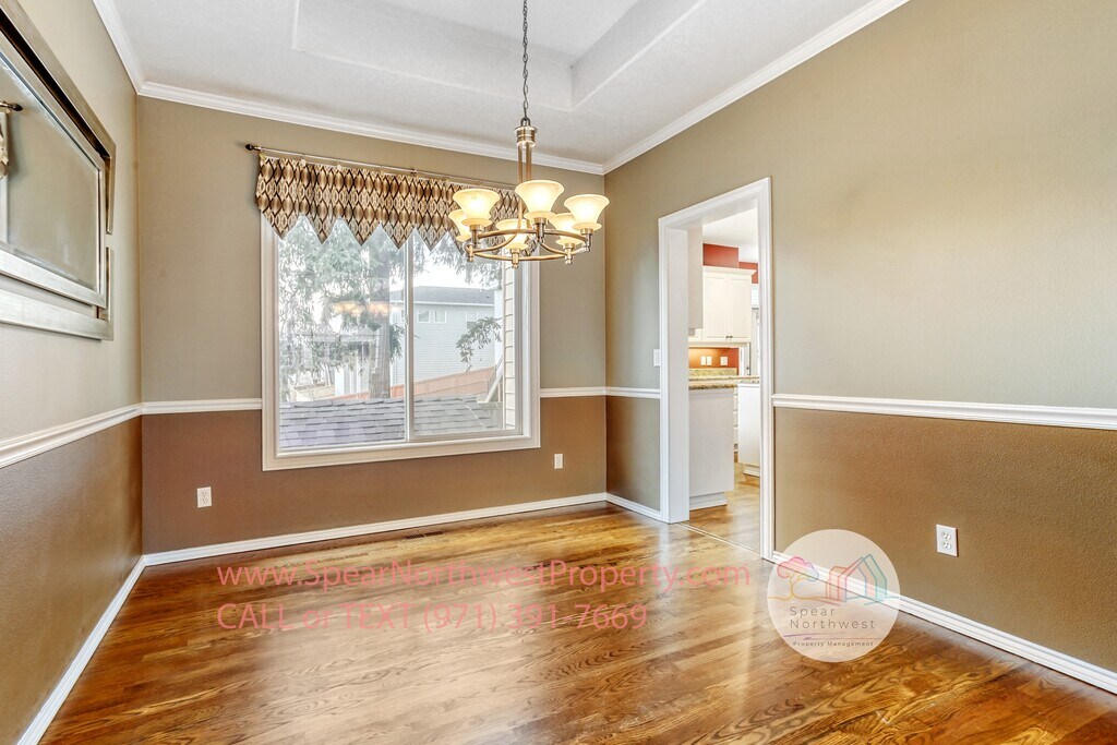 Spacious 4BR / 3BA Home w/ Main-Level Bedroom, Hardwood Floors, A/C + Expansive Outdoor Living (Erickson Heights) This well-maintained and thoughtfully upgraded home offers nearly 2,700 sqft of comfortable living in a desirable Tigard location. Featuring 4 bedrooms, 3 full bathrooms, and a flexible layout with a main-level bedroom and full bath, this home is ideal for a variety of living arrangements. Inside, you'll find extensive hardwood flooring, multiple living spaces, and a well-appointed kitchen with slab granite and high-end stainless appliances. The backyard is a standout—designed for outdoor living with an expansive deck (~600 sq ft), fire pit, and water feature, leaving ample space for your garden. MAIN LEVEL — Functional & Entertainer-Friendly * Formal living room with gas fireplace and hardwood floors * Separate family room (great room style) with second fireplace * Kitchen with slab granite, island, pantry, and stainless appliances * Dining area with access to large deck * Main-level bedroom + full bath (ideal for guests, office, or multi-gen use) UPPER LEVEL — Bedrooms + Bonus Space * Luxurious Primary Suite: Generously sized bedroom featuring an elegant tray ceiling with a modern ceiling fan, wall sconces, and a large picture window framing peaceful tree views. * Spa-Like Primary Ensuite: Double-door entry leads to a bright, spacious bathroom featuring a jetted soaking tub with a tile surround, a separate water closet, and an expansive double-sink vanity with abundant counter space and built-in linen storage. * Show-Stopping Custom Closets: The suite boasts two walk-in closets, including a massive, custom-built dressing room complete with rich, dark-wood cabinetry, extensive shelving, hanging racks, and a stunning center island with a stone countertop and built-in drawers. * Two additional bedrooms with vaulted ceilings * Bonus room (flex space for media, office, or playroom) * Full hall bathroom OUTDOOR & EXTERIOR FEATURES * Expansive ~600 sq ft deck for outdoor living * Fire pit and water feature * Fenced yard with garden potential * Backs to greenspace (privacy; future development unknown) PARKING & STORAGE * Attached oversized 3-car garage * Driveway parking HIGHLIGHTS * 4 bedrooms • 3 bathrooms • ~2,600+ sq ft * Main-level bedroom + full bath * Extensive hardwood floors * Granite kitchen + stainless appliances * Two gas fireplaces * Central A/C + forced-air heat * Bonus room upstairs * Large outdoor living space with deck, fire pit & water feature * 3-car garage * Quiet Tigard location in Erickson Heights KEY DETAILS * Rent: $3,595 / month * Security Deposit: Equal to one month's rent (subject to screening) * Lease Term: 12 months minimum * Availability: Coming Soon / Contact for details * Pets: Allowed; $50/month per approved pet (service and assistance animals accepted per law) * Smoking/Vaping: Not permitted anywhere on the property * Parking: Oversized 3-car attached garage + driveway APPLIANCES & SYSTEMS (Tenant to Verify) Kitchen includes stainless appliance package (built-in oven/range, dishwasher, microwave, gas appliances). Heating is forced air (gas) with central A/C. Two gas fireplaces. Additional features may include central vacuum and air filtration system (tenant to verify). UTILITIES & SERVICES Tenant pays all utilities unless otherwise agreed in writing. Typical providers may include: * Electric: PGE * Gas: NW Natural * Water: City of Tigard * Sewer: Clean Water Services * Garbage/Recycling: Pride Disposal * Internet/Cable: Tenant choice, subject to availability Yard care is tenant responsibility unless otherwise agreed in writing. SCHOOLS (Tenant to Verify) * Templeton Elementary * Twality Middle * Tigard High APPLICATION & SCREENING All occupants 18+ must apply. Screening includes credit, background, rental history, and income verification. Applications are processed in the order received once complete. * Income standard is generally ~2–2.5× monthly rent unless otherwise permitted by law * Renter's insurance required (minimum $100,000 liability) * This home is not an ADA-accessible dwelling unit 3rd party applications (e.g., Zillow) may be accepted for initial screening; final approval requires completion of Spear Northwest's in-house application. * Move-in no later than 04/30/2026 DISCLOSURES & DISCLAIMERS * Professionally managed by Spear Northwest, LLC — Property Management (affiliated with Kelly Right Real Estate of Portland, LLC) * Information deemed reliable but not guaranteed; applicants should independently verify square footage, features, utilities, and school boundaries * Marketing materials (including photos/video) are for general information and may not reflect current condition * Availability and terms subject to change until a lease is executed * Equal Housing Opportunity Applications can be found here: Spacious 4BR / 3BA Home w/ Main-Level Bedroom, Hardwood Floors, A/C + Expansive Outdoor Living (Erickson Heights) This well-maintained and thoughtfully upgraded home offers nearly 2,700 sqft of comfortable living in a desirable Tigard location. Featuring 4 bedrooms, 3 full bathrooms, and a flexible layout with a main-level bedroom and full bath, this home is ideal for a variety of living arrangements. Inside, you'll find extensive hardwood flooring, multiple living spaces, and a well-appointed kitchen with slab granite and high-end stainless appliances. The backyard is a standout—designed for outdoor living with an expansive deck (~600 sq ft), fire pit, and water feature, leaving ample space for your garden. MAIN LEVEL — Functional & Entertainer-Friendly * Formal living room with gas fireplace and hardwood floors * Separate family room (great room style) with second fireplace * Kitchen with slab granite, island, pantry, and stainless appliances * Dining area with access to large deck * Main-level bedroom + full bath (ideal for guests, office, or multi-gen use) UPPER LEVEL — Bedrooms + Bonus Space * Luxurious Primary 