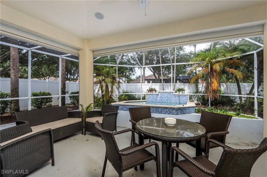 Enjoy your season in this stunningly Renovated 3-Bedroom,2 bathroom home on Tranquil Cul-de-Sac Location. This impeccably renovated residence offers an exceptional blend of modern elegance and comfortable living. With its inviting open floor plan and high ceilings,this property is designed for both relaxation and entertaining. As you step inside,you’ll be greeted by an expansive living area that seamlessly flows into the dining space and fully equipped kitchen. The heart of the home boasts a spacious center island,ideal for meal prep or casual dining. The kitchen is fully equipped generous cabinetry,and sleek countertops. This home features three well-appointed bedrooms,each designed with comfort and tranquility in mind. The primary suite includes a king bed,en-suite bathroom with walk-in shower,and walk-in closets. Two additional bedrooms offer ample space and versatility with trundle beds in each room for extra family or friends. Step outside to discover your private oasis! The covered lanai is perfect for alfresco dining or enjoying your morning coffee while overlooking the lush surroundings. The small heated dipping pool invites you to unwind and relax. This house also features a 2 car garage,WIFI,washer and dryer. Sterling Oaks is a gated community with an abundance of amenities creating an active healthy lifestyle. Enjoy fine dining in the Oak Room or nosh at the cabana by the pool. You can indulge in the fitness center,pickle ball,tennis,basketball and walk or ride your bike around the impressive,expansive property enjoying the meticulous landscaped scenery.
