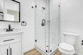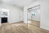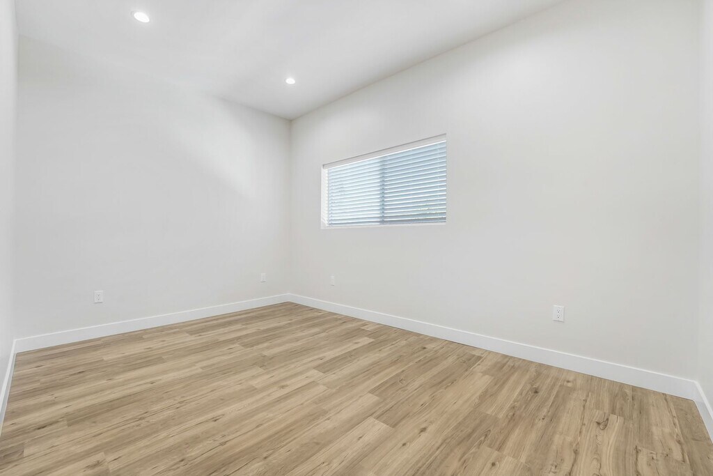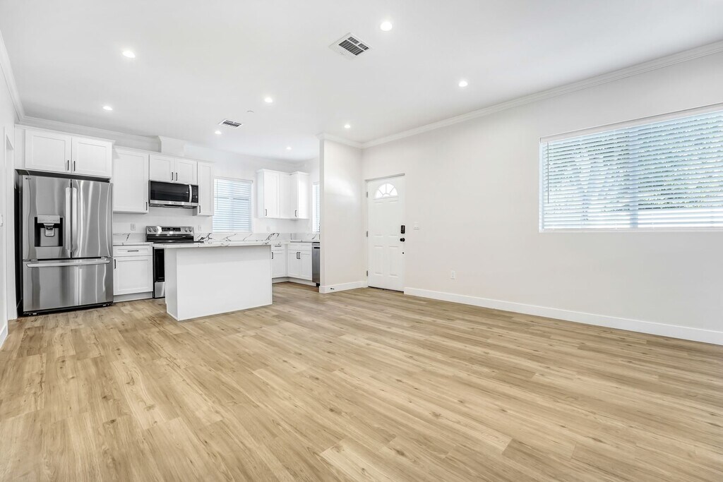 This brand new construction solar three-bedroom, three-bath two-story home is located at the rear of a quiet four-home planned community, offering exceptional privacy, mature shade trees, and a peaceful setting away from the street. Designed with both style and functionality in mind, this home delivers modern living in a thoughtfully planned environment. The interior showcases luxury vinyl plank wood flooring throughout and an open-concept layout anchored by a massive chef-style kitchen. The kitchen features a large center island with a white marble countertop, abundant cabinetry, and an oversized pantry with extensive storage, making it ideal for entertaining, cooking, and everyday living. A huge laundry room provides excellent functionality and is perfectly suited for a family or active household. All three bedrooms are located upstairs, creating a comfortable separation between living and sleeping areas. The primary suite includes an ensuite bathroom, while the additional bedrooms are generously sized and well-appointed, offering flexibility for family, guests, or a home office. Additional features include a private outdoor area, two tandem parking spaces, and a clean, contemporary aesthetic throughout. Tenant to pay all utilities. This home is one of four newly built residences in a small, thoughtfully designed community and presents a rare opportunity to lease a brand-new home with high-end finishes, privacy, and modern design.