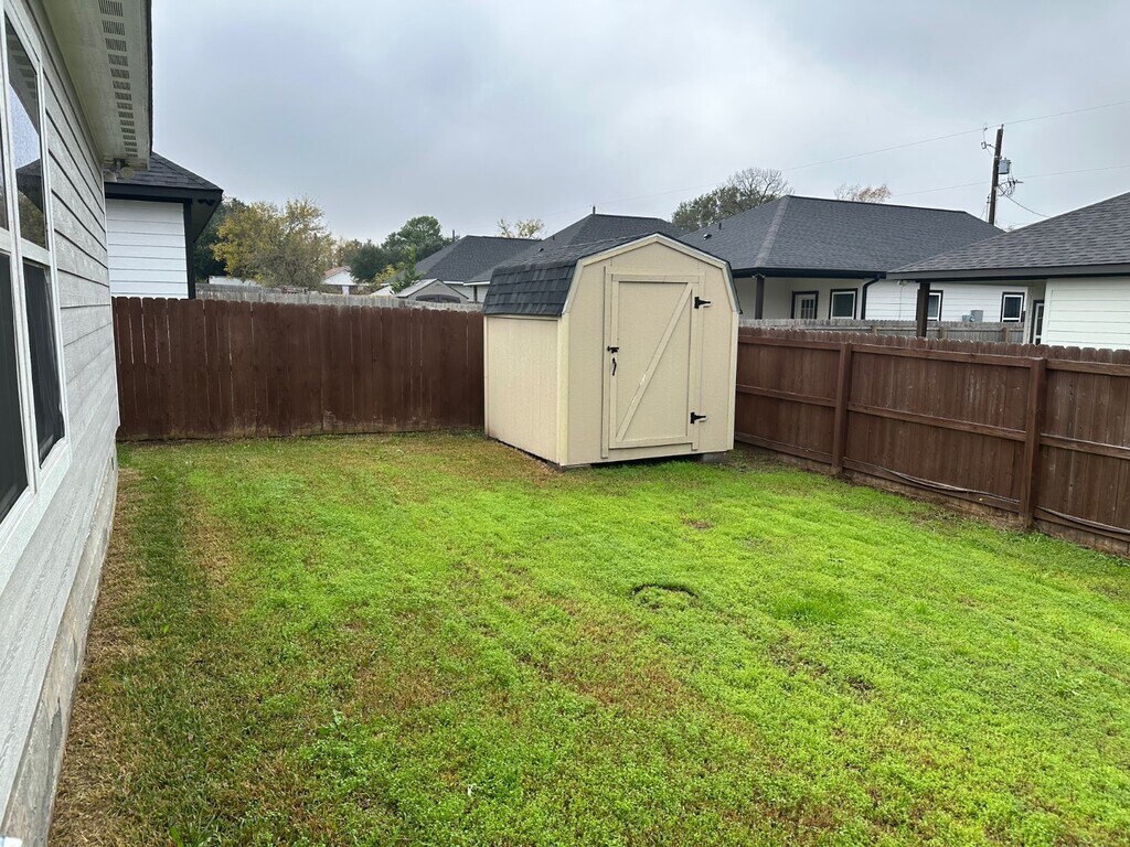 Beautiful Home with space for everyone! Settle into a 4 BEDROOM 3 BATH HOME WITH A THREE WAY SPLIT, FOURTH BEDROOM COULD BE A SECOND MASTER. Featuring granite throughout, Master Bath with a Huge Walk In Shower, LG Master Closet, carpet in the bedrooms and wood vinyl in the kitchen and living area, plus a security system. With quick access to HWY 6 your close to TAMU, BLINN COLLEGE, SHOPPING AND THE PLEASURES OF HISTORIC DOWNTOWN BRYAN. Enjoy time outside with family and friends in the Backyard with Covered Patio and Storage Shed. Schedule a tour today before this one is gone! One Dog Welcome! Available for immediate or near immediate move in only.