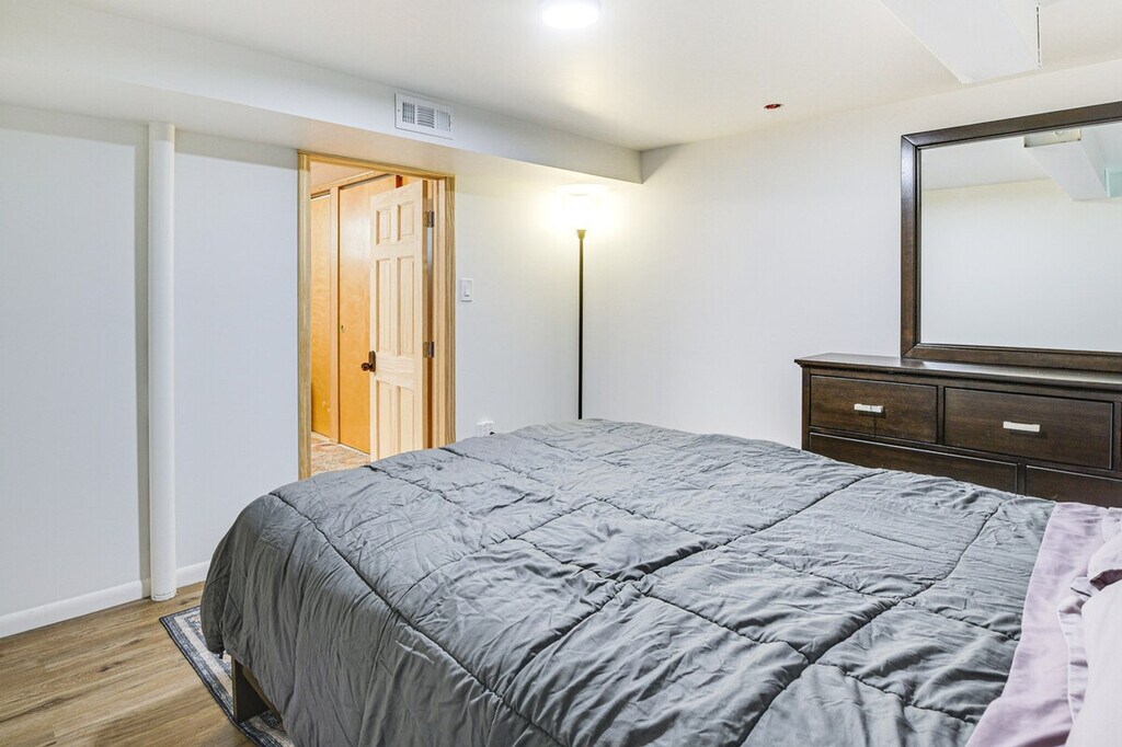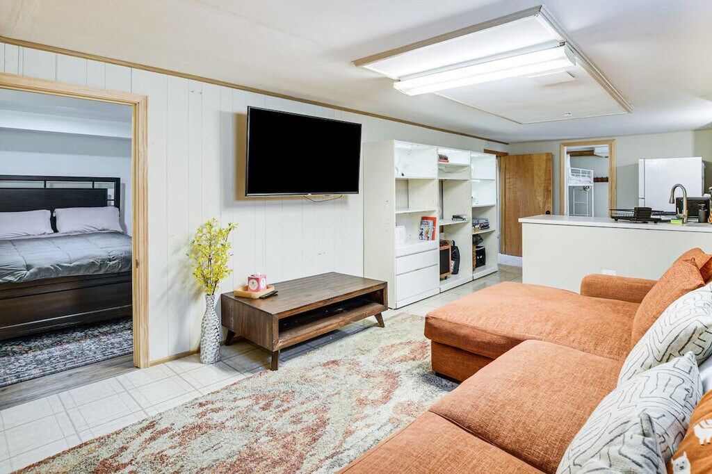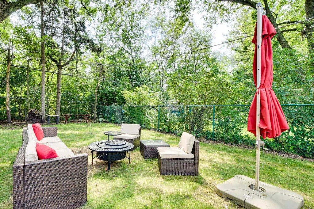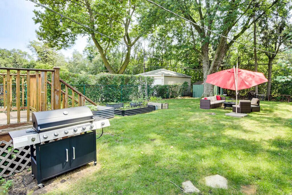 Your next North Shore escape awaits at this Evanston vacation rental! Nestled near downtown and Lake Michigan, this 2-bedroom, 1-bath apartment makes it easy to shop, dine, visit campus, and stroll along sandy shores. This single-story basement apartment requires interior stairs to access. Enjoy the shared backyard with outdoor seating, an umbrella, a gas grill, and a fire pit. Inside, the open floor plan features a flat-screen TV, board games, and books for entertainment. The kitchen is fully equipped with a refrigerator, stove, oven, dishwasher, drip coffee maker, toaster, cooking basics, spices, dishware, and flatware. Pet friendly with a $50 fee plus additional fees and taxes. Parking includes a shared driveway for one vehicle and free street parking on a first-come, first-served basis. Located near downtown Evanston and Lake Michigan, this apartment offers easy access to shopping, dining, and campus visits. Cheer on the Wildcats at Ryan Field or take a quick train ride into Chicago for more exploration. This property features two exterior security cameras facing outwards for your safety. No smoking, events, parties, or large gatherings are allowed. Guests must be at least 25 years old to book. Additional fees and taxes may apply. Photo ID may be required upon check-in. There is another bookable vacation rental on-site that shares the backyard and driveway, so other travelers may be present during your stay. [SI]