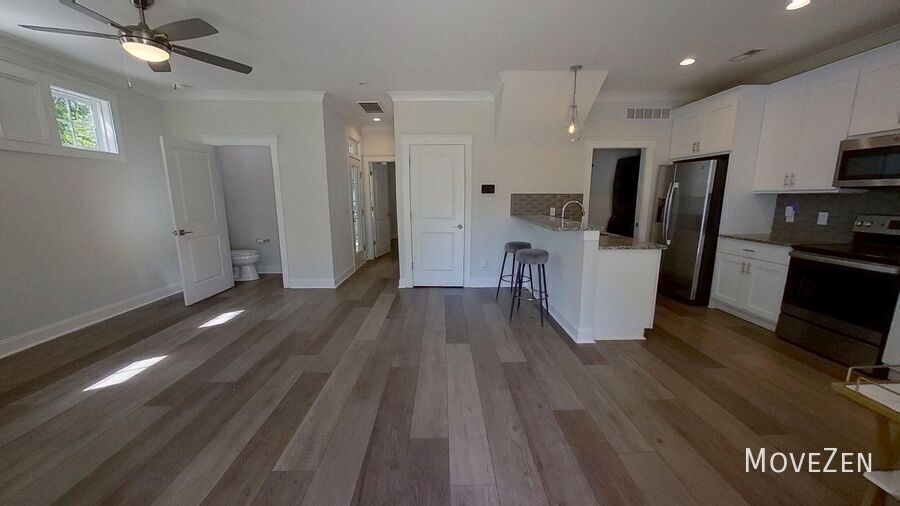 Camp Northend! Need we say more? Locals know this is the artsiest part of the Queen City where you’ll find truly creative architecture, mural covered buildings, trendy shops and restaurants, and a historic, low density urban feel that you cannot replicate anywhere else in the area. Even the restaurants and their menus are unique and creative. Some of the most popular Charlotte eateries are here, and people drive for miles to enjoy them. You’ll also enjoy easy access to the light rail and all that offers. Minutes from trendy NoDa and downtown Charlotte, you’ll have quick commutes via highways 77 and 85. *********** See this home's 3D Virtual Tour Below. Images so clear, it's like you're really there! MoveZen.Rentals/Tours *********** Much-loved privacy fenced yard Plenty of parking Stunning must-see attention to detail rarely found in a rental Premier & unique architecture & roof lines Modern wide plank floor Gorgeous granite counters Stunning tile backsplash Large bonus room Lots of windows & natural light Modern, open floorplan Very large bedrooms Various built-in shelving, organization, etc. Tons of closets & storage spaces Premium 2 panel doors Stunning custom front door High-end fixtures, faucets & hardware Custom lighting throughout Oversize trim & baseboards High-efficiency washer & dryer Completely renovated baths Glass and tile showers Many ceiling fans Fire pit and outdoor living area Covered porch Rocking chair front porch with swing ***********