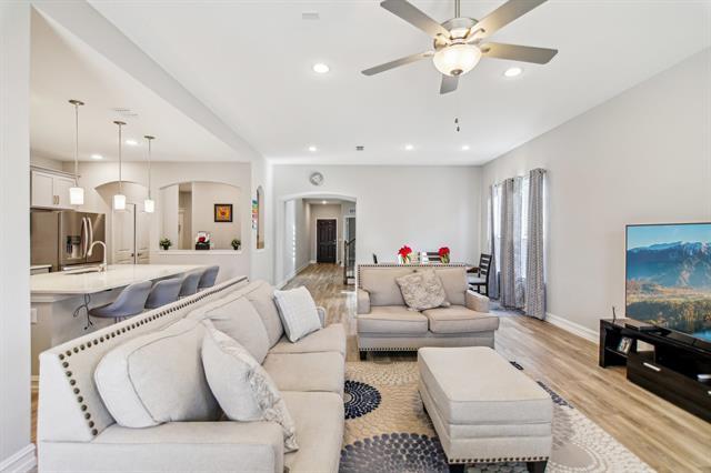 Washer, dryer, and fridge are included! Welcome to this stunning home in the highly sought-after Winn Ridge community, just minutes from the new H-E-B, Prosper Costco, Chowrashta, and endless shopping and dining options! From the moment you step inside, you'll be captivated by the soaring ceilings and grand entrance. The spacious living area is a showstopper, featuring a striking stone fireplace and walls of windows that flood the space with natural light. The heart of the home is the gorgeous kitchen, designed for both beauty and function—with sleek quartz countertops, a gas cooktop, a massive island, and tons of storage. Plus, there's a built-in office nook, perfect for keeping life organized. Elegant LVP flooring flows seamlessly throughout the main living areas.The private primary suite is a true retreat, offering an abundance of natural light and a spa-like ensuite bathroom. Upstairs, you’ll find a huge game room and generously sized bedrooms, providing plenty of space for everyone. This home has it all—don't miss your chance to make it yours!
