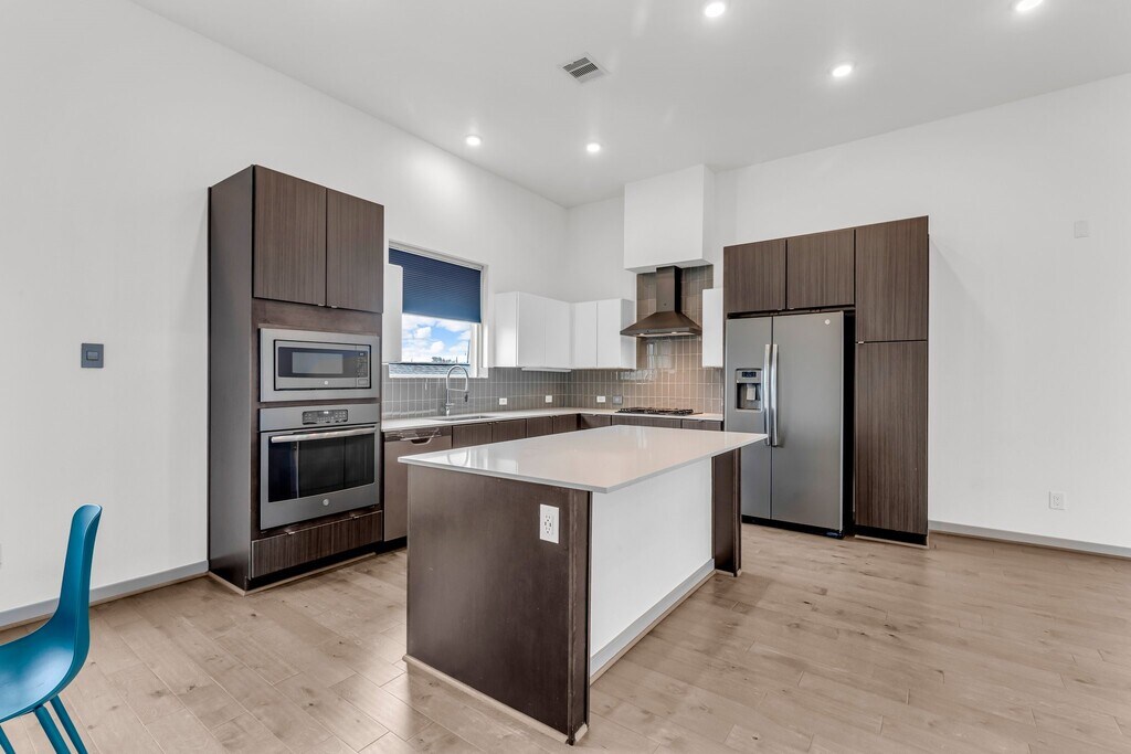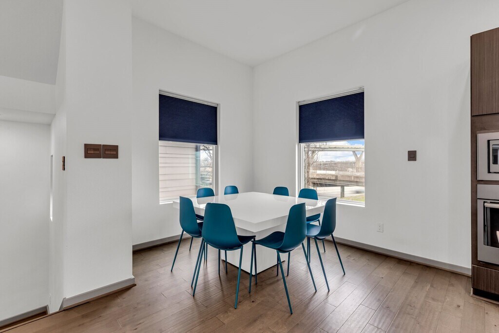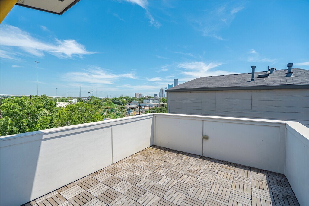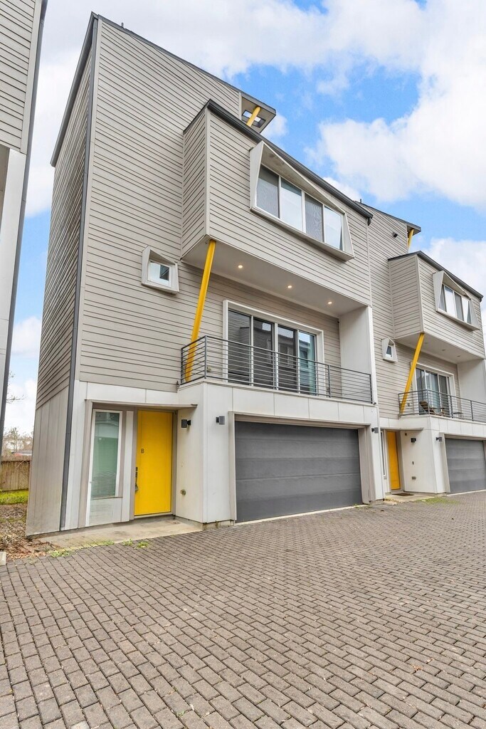 Experience luxury living in this modern 4-story home by award-winning architect Urbatechture,located in trendy Sawyer Heights. The first floor features an oversized two-car garage with EV plug,and a full bedroom with en-suite bathroom. The second floor offers an open-concept living,kitchen,and dining area with abundant natural light,slate appliances,high-end cabinets,and quartz countertops. Hardwood floors and recessed LED lighting enhance the space,with a balcony off the living room. The third floor houses the primary suite with a spa-like bathroom and custom closet,plus a laundry area and secondary bedroom with an en-suite bath. The fourth floor boasts a rooftop terrace with breathtaking views of downtown Houston. Close to freeways,downtown,restaurants,bars,and hike and bike trails. MLS# 14064823
