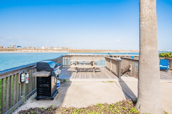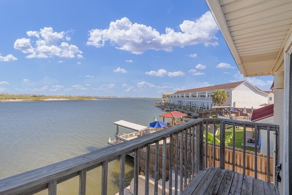 ONCE IN A BLUE MOON...a waterfront townhome with this location and view comes along! Two stories with living dining, kitchen, half bath on first floor and 2 bedrooms, 2 baths and laundry area on second floor. Sliding doors lead to your private balcony and patio with water views of Lake Padre and gorgeous sunsets. Short jaunt to the beach and morning sunrises. The best of both worlds! Washer, dryer and fridge included. Pets negotiable.