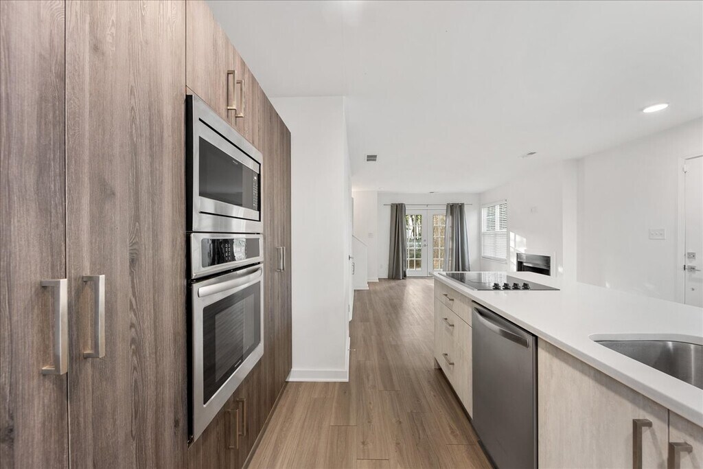 Picture perfect upgraded luxury duet home with white picket fenced yard - Small complex with just 46 units in total - Completely updated with all of today's current finishes and upgrades - Just a few blocks to popular Midwood neighborhood restaurants, bars, parks, greenway & future trolley line - Completely fenced back yard - Freshly painted with neutral paint and brand new carpet on the 2nd floor - Two bedroom with private baths - Large living space with tons of natural light - Open floorplan with LVP floors on the main living level - Kitchen with white quartz counters, island, wall oven, cooktop and generous cabinet and counter space - Generous living space with gas log fireplace - Call anytime for your private home tour!