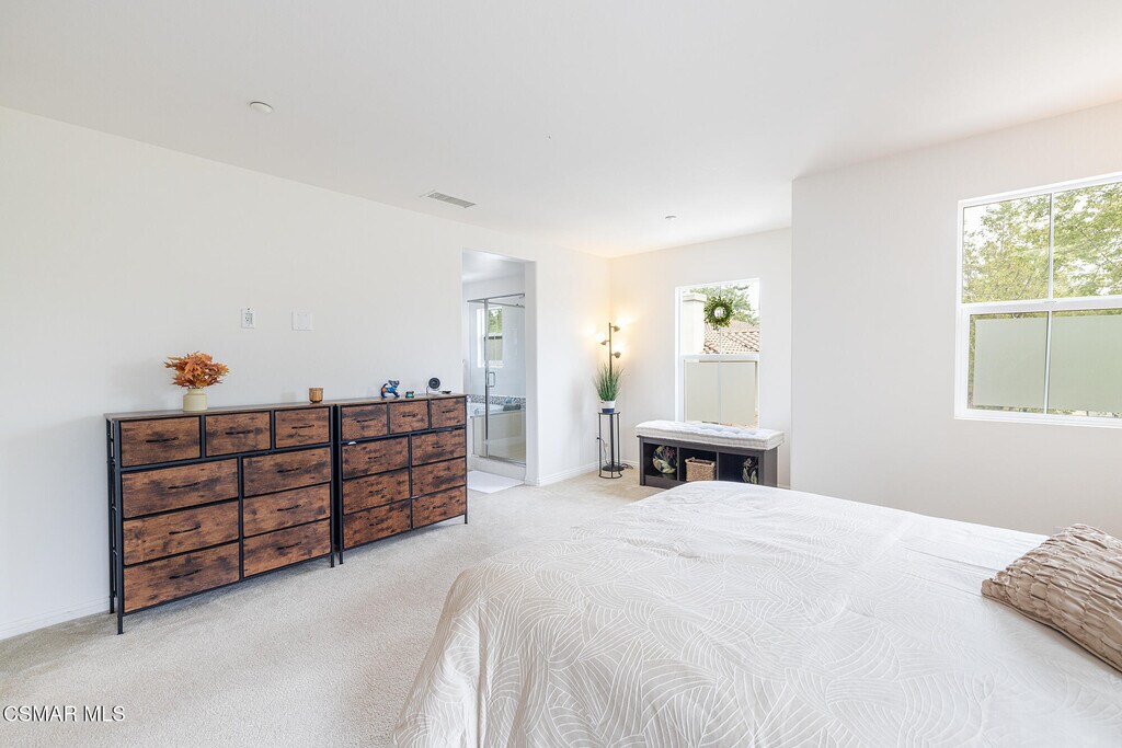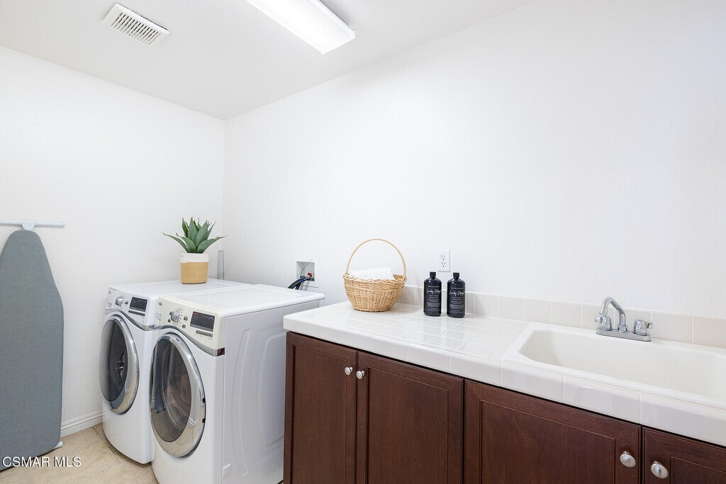 Experience the best of Newbury Park with Oak Terrace living in this stylish and private end unit! Bathed in natural light, this home features high ceilings, hardwood floors, and an open floor plan perfect for modern living. The inviting living room with a fireplace flows into the dining area and a chic kitchen with granite countertops and Whirlpool Gold stainless steel appliances. Step out to your private patio for easy indoor-outdoor enjoyment. Upstairs, the spacious primary suite offers a relaxing sitting area and an ensuite bath with a separate tub/shower and a large walk-in closet. Two large secondary bedrooms and a well-equipped laundry room with utility sink, complete the second floor. Added perks include a Pelican water filtration system, and ADP security system with cameras, Residents enjoy community amenities like a half-court basketball court and playground, plus the convenience of nearby hiking and biking trails, shopping, dining, and easy freeway access.