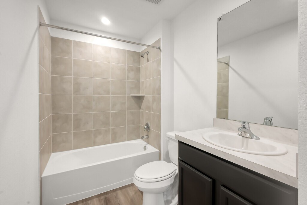 Newer construction 2-story DR Horton home in Harrington Trails features 4 bedrooms and 3 bathrooms with an open-concept layout,including two downstairs bedrooms with private baths perfect for guests or multi-generational living. The home offers energy-efficient features for savings,all appliances included,and vinyl plank flooring for easy cleaning. Residents enjoy community amenities such as a resort-style pool,pavilion,playground,and walking trails,with Timber Lakes Elementary School just a short walk away. Conveniently located near Hwy 59 and 242,this home combines modern comfort,move-in ready features,and an amenity-rich community. MLS# 72673663