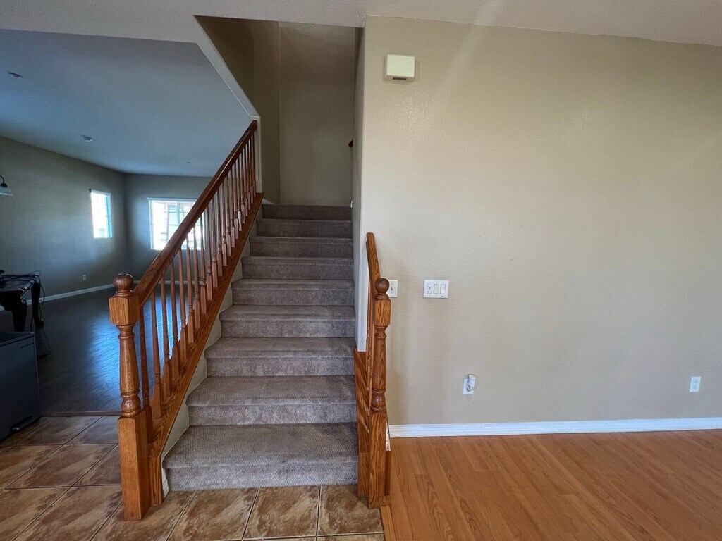STUNNING 4 + 2.5 TWO - STORY HOME in Fontana CA! Enjoy a gorgeous view of the Fontana hills leading to your new home. Spacious drive way and located in a beautiful quiet neighborhood. This home features a small patio upfront before you walk into an extra large Living Area/Dining Area with windows providing natural lighting. Kitchen features recessed lighting with dishwasher/stove and microwave. An island that provides extra storage space along with plenty of cabinetry for all of our storage needs, extra spacious pantry and tile flooring for easy cleanup. Family room features a gorgeous fireplace with following access to downstairs half bathroom, laundry room, closet and 2 car garage. Second floor provides plenty of family space with a loft and built in work desk. All 3 bedrooms feature extra large roll door closets. 2 bedrooms have built in window seats with clear view of the Fontana hills. Primary bedroom is extra spacious with a gorgeous bathroom featuring dual sinks, private toilet room stand up shower and spa with walk in closet. This home also features an adorable outdoor patio and plenty of yard space for the family. Washer/Dryer included, Central AC/HEATING, Security camera access and landscaping included. With short drive access to surrounding dining/entertainment/shops, community parks and re centers, located near 15 freeway. CALL US OR APPLY TODAY! DRE# 01383297. ALL applicants must complete a PetScreening Profile even if the household does not have a pet/animal.