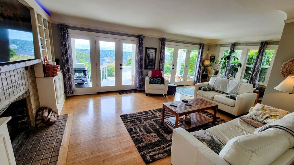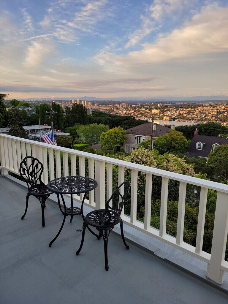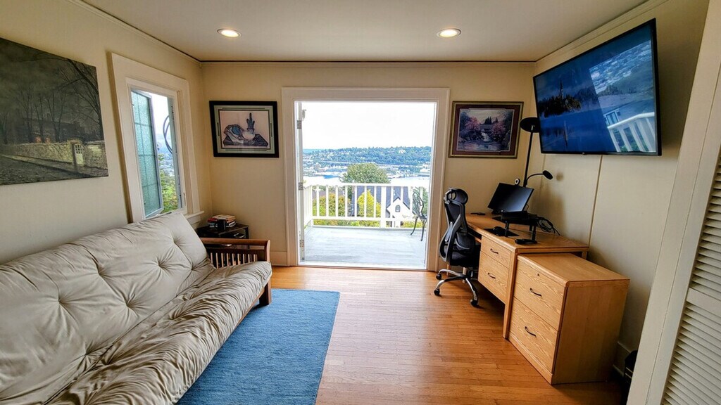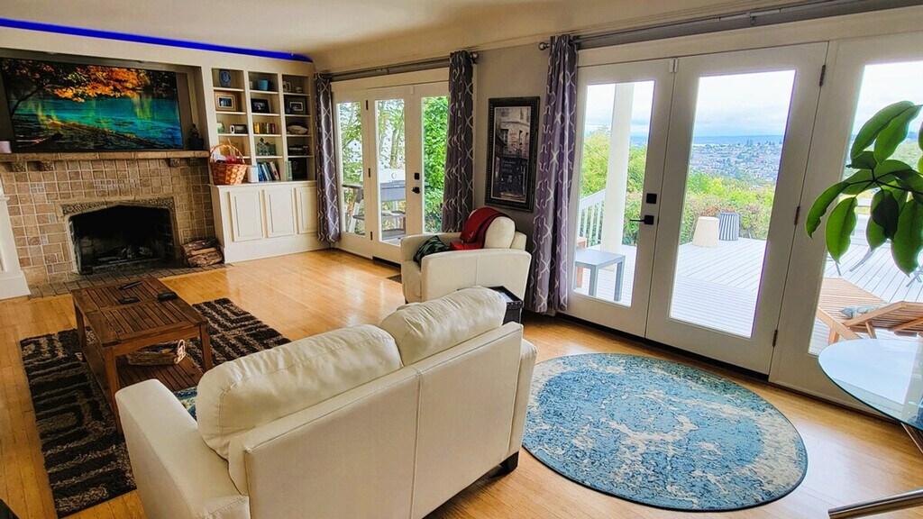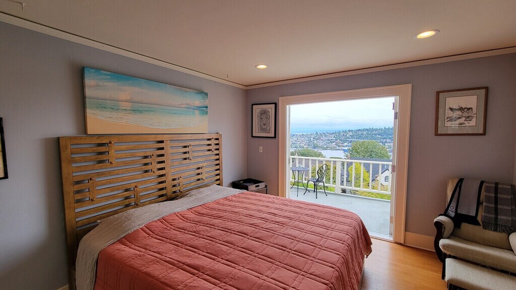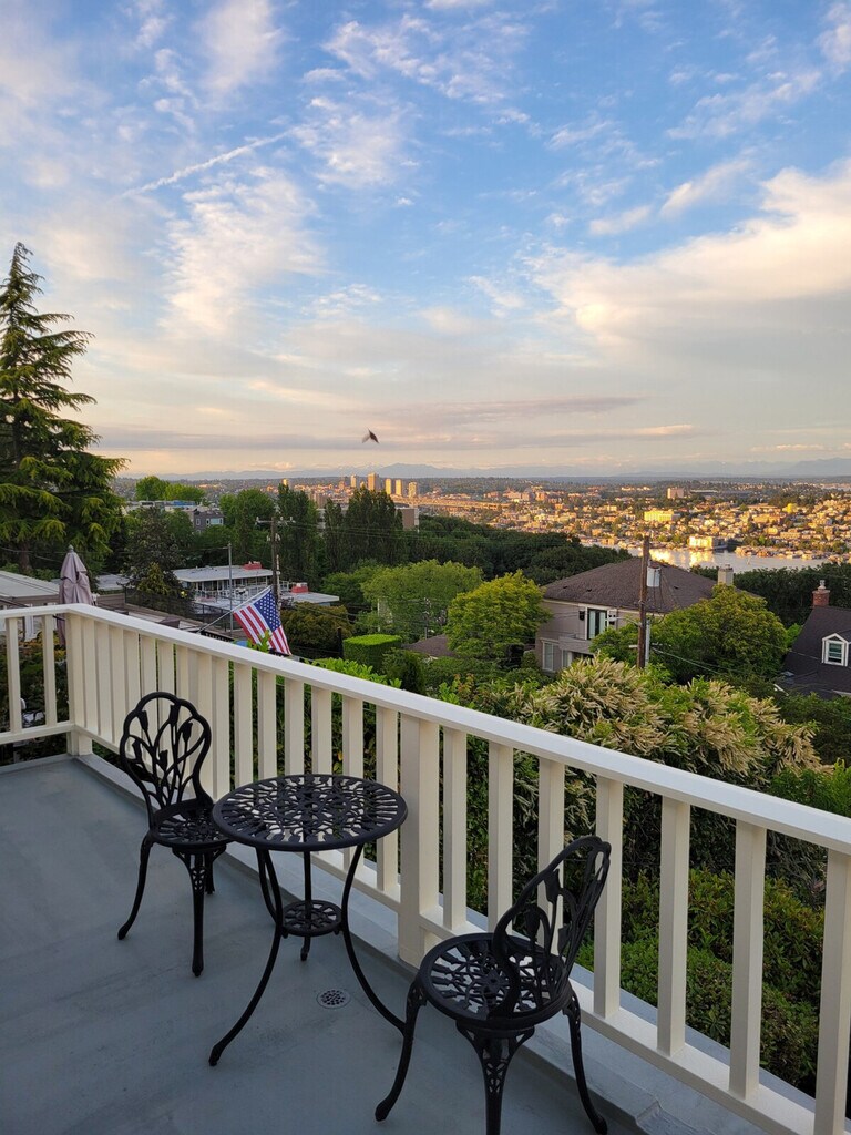 Experience true Seattle and feel at home in this charming 2-bedroom, 2.5-bathroom Queen Anne home with stunning views of Lake Union and the Space Needle. Please keep in mind that the home is located high up on a hill, so there are stairs to climb to reach the front door. This home features a fully equipped kitchen with cookware, dishes, utensils, and a coffee maker. Enjoy the cozy living space, in-unit washer and dryer, and a front deck with lake views. Stay connected with fast Wi-Fi and a smart TV. Free parking is available. Located in a prime Queen Anne location, this apartment is within walking or driving distance to top Seattle attractions like the Space Needle, Seattle Center, and Pike Place Market. Enjoy peaceful surroundings with urban convenience. Please keep the stairs in mind when bringing luggage. Includes a dedicated office room for remote work.