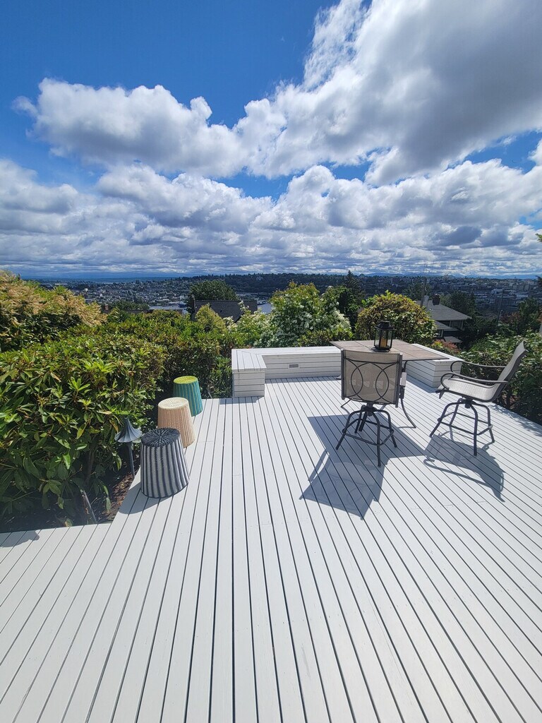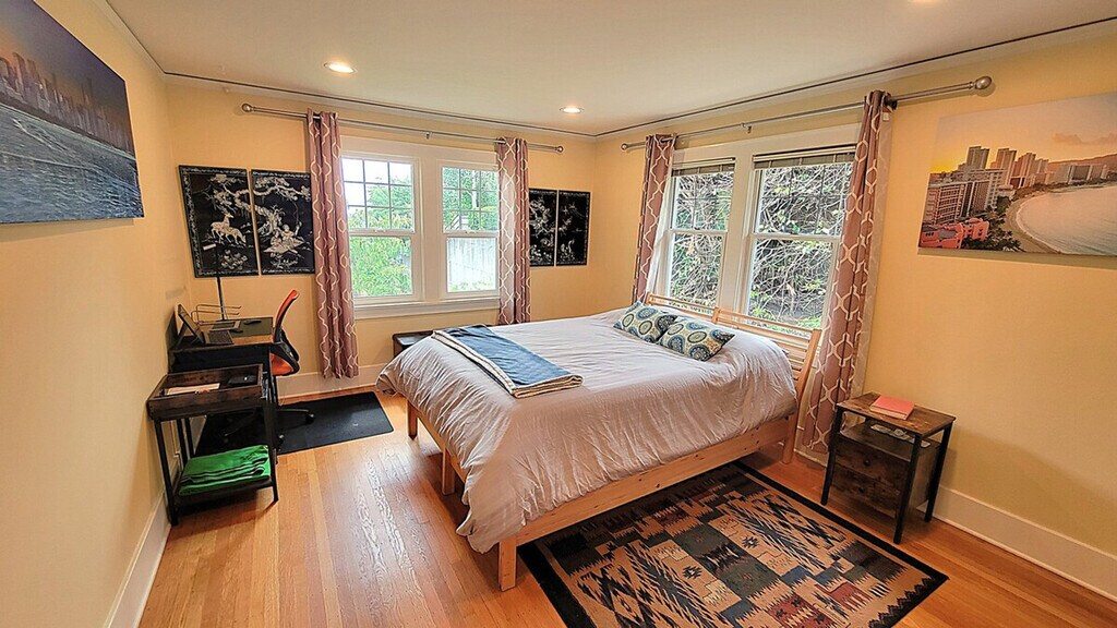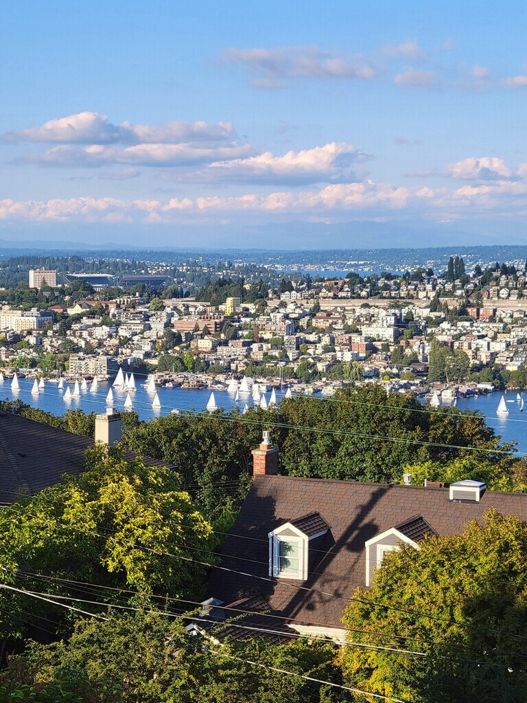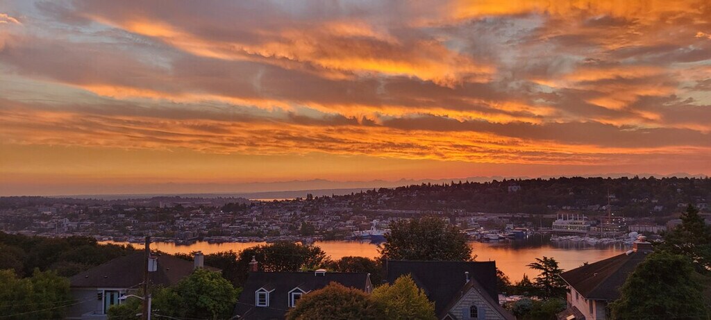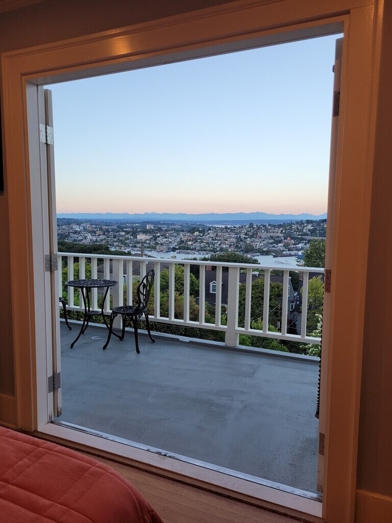 Experience true Seattle and feel at home in this charming 2-bedroom, 2.5-bathroom Queen Anne home with stunning views of Lake Union and the Space Needle. Please keep in mind that the home is located high up on a hill, so there are stairs to climb to reach the front door. This home features a fully equipped kitchen with cookware, dishes, utensils, and a coffee maker. Enjoy the cozy living space, in-unit washer and dryer, and a front deck with lake views. Stay connected with fast Wi-Fi and a smart TV. Free parking is available. Located in a prime Queen Anne location, this apartment is within walking or driving distance to top Seattle attractions like the Space Needle, Seattle Center, and Pike Place Market. Enjoy peaceful surroundings with urban convenience. Please keep the stairs in mind when bringing luggage. Includes a dedicated office room for remote work.