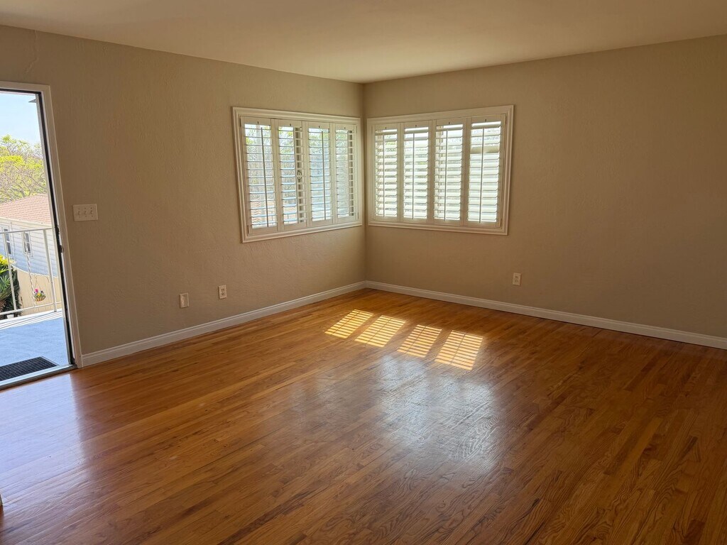 This spacious 3-bedroom, 2-bathroom upstairs apartment features a shared yard, entry patio, hardwood floors, and plenty of storage. One garage parking space is included with a second available soon. Community laundry onsite. 8 blocks to the beach! One-year lease $4,600 per month $4,600 security deposit Available now Water & trash included Tenant pays SDGE & internet Renter's insurance required Small pet <20lb considered No co-signers Please call if you have any questions or to schedule a showing. 1. All applicants must have 700+ credit to qualify. Proof of income showing at least 2.5x the monthly rent required. A $40.00 credit check fee is required, per person. Please do not apply if you have bad credit or any evictions. 2. All applicants must have a good rental history. 3. Any and all residents over 18 years of age living in a unit must have an approved application on file with the office. Before move in, the security deposit and first month's rent must be paid with a cashiers check or money order. Trash Water