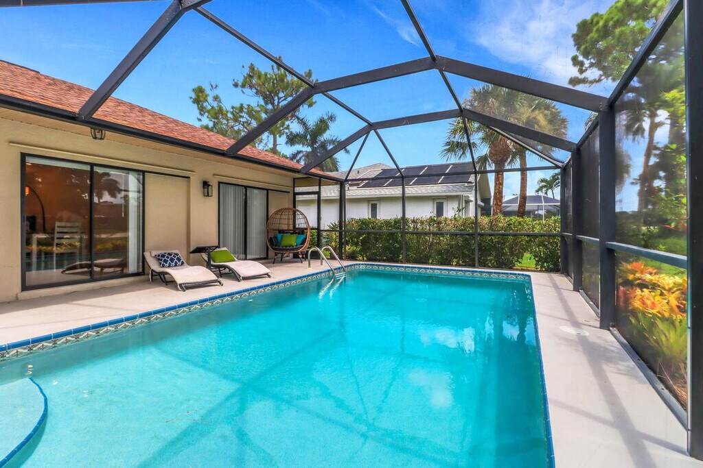 This 3-bedroom luxury home is in a prime location in Naples, FL, offering everything you need for an amazing vacation. Feel at home with a private screened pool, lush backyard views, and shaded outdoor seating. The home features a plush sectional couch, flatscreen TVs in all bedrooms, and a fully stocked kitchen, ensuring comfort and convenience throughout your stay. Step into vacation mode at this stunning retreat designed to impress and built for comfort. With 3 beautifully styled bedrooms and 2 bathrooms, this home easily hosts up to 6 guests. The chef’s kitchen is fully stocked with high-end appliances, a large refrigerator, ample cabinetry, and countertops with breakfast bar seating. The open concept layout seamlessly flows from the living room to the kitchen and dining areas, creating a perfect space for relaxation and entertainment. Up to 2 dogs are allowed for $50 per stay, but no cats please. Parking is available for 2 cars in the driveway, and street parking is allowed. The garage is currently out of service and not available for guest use. Located just minutes away from world-class beaches, golf, vibrant dining, and shopping, this home is your perfect launchpad for paradise. Nearby attractions include the Naples Zoo at Caribbean Gardens, Naples Botanical Garden, Artis–Naples, and the iconic Naples Pier. Enjoy fresh seafood at Mr. Big Fish, casual coastal dining at Hogfish Harry’s, or vibrant flavors at La Bamba. Check-in is at 4pm and check-out is at 10am. No parties are allowed, and violations may result in immediate termination of the stay. Guests must be 21 years or older to book this property. The garage door cannot be opened or accessed at this time. We’re actively working to resolve the issue and appreciate your understanding during your stay. The home features cozy ambient lighting and a seamless flow between spaces, creating a comfortable environment for both relaxation and work-from-home needs. A laptop computer is not included. [SI]