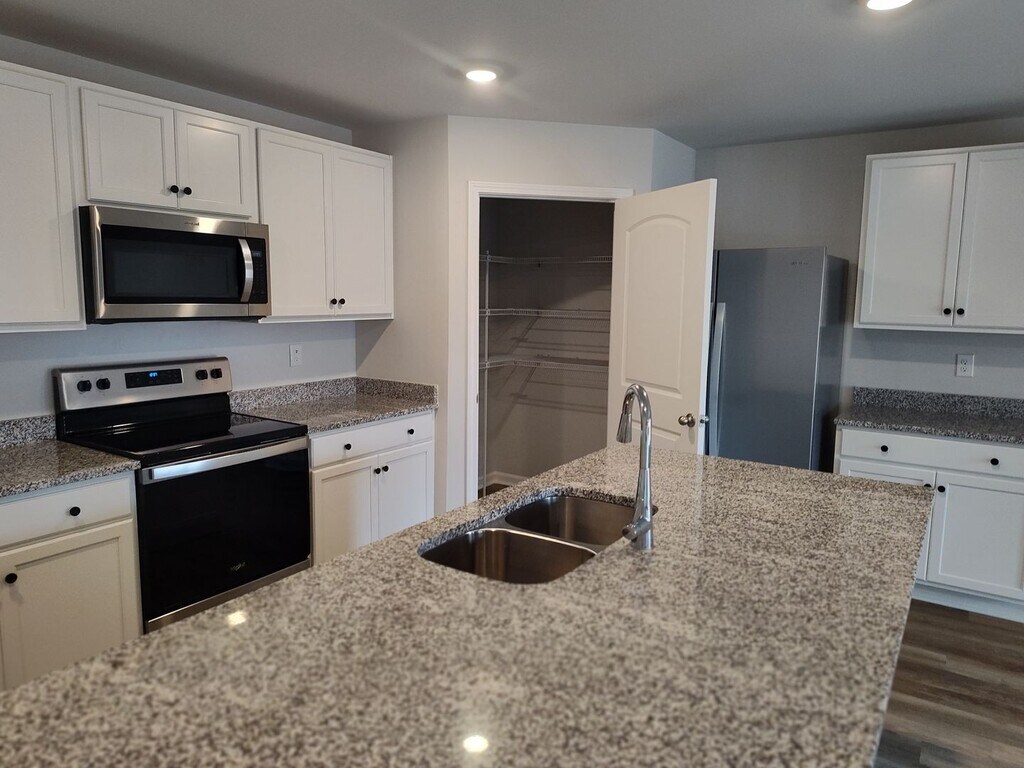 Beautiful D.R. Horton Cali (F) plan provides Smart Home features in this efficient 4 bedroom, 2 bathroom 1,884 sq ft open concept home! The kitchen boast granite counter tops, breakfast area, open to a spacious great room with LVP flooring. Primary bedroom suite is private with a 5' shower, large walk-in closet and an extra closet for storage and quartz counter tops in the bathrooms. 2 car garage, laundry room, and pantry. Carpet in the bedrooms. Shaded covered patio. Cullman City Schools