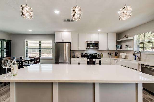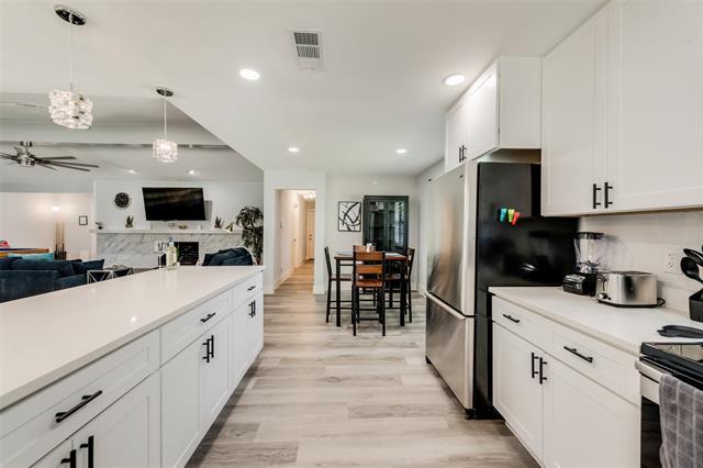 Move-In Ready, Fully Furnished, and fully updated single-story home features 4 bedrooms and 3 bathrooms with a spacious open floor plan and modern finishes throughout. Designed for comfort and convenience, the home includes large TVs in each room, a pool table, a bar-height seating area in the kitchen, and full access to the garage and outdoor spaces. The main living area is filled with natural light, luxury vinyl flooring, and oversized windows. Enjoy plush seating, a flat-screen TV, and seamless flow into the dining area and kitchen. The kitchen is fully stocked and equipped with stainless steel appliances, ample cabinetry, and everything needed for a comfortable stay. A washer and dryer are also provided. Each bedroom is thoughtfully furnished, and all bathrooms have been updated with contemporary touches. The layout works well for families and roommates. Step outside to a private backyard featuring a spacious patio, outdoor furniture, and a sparkling heated pool perfect for relaxing or entertaining. The yard’s mature landscaping provides a serene setting for outdoor meals or sunset views. Just minutes from Carrollton’s top dining, shopping, and conveniences, this home offers an ideal blend of comfort and location near George Bush Tollway and 35. Lease options starting at 31 days or more. Flexible applicant requirements. City of Carrollton Permit: RH000