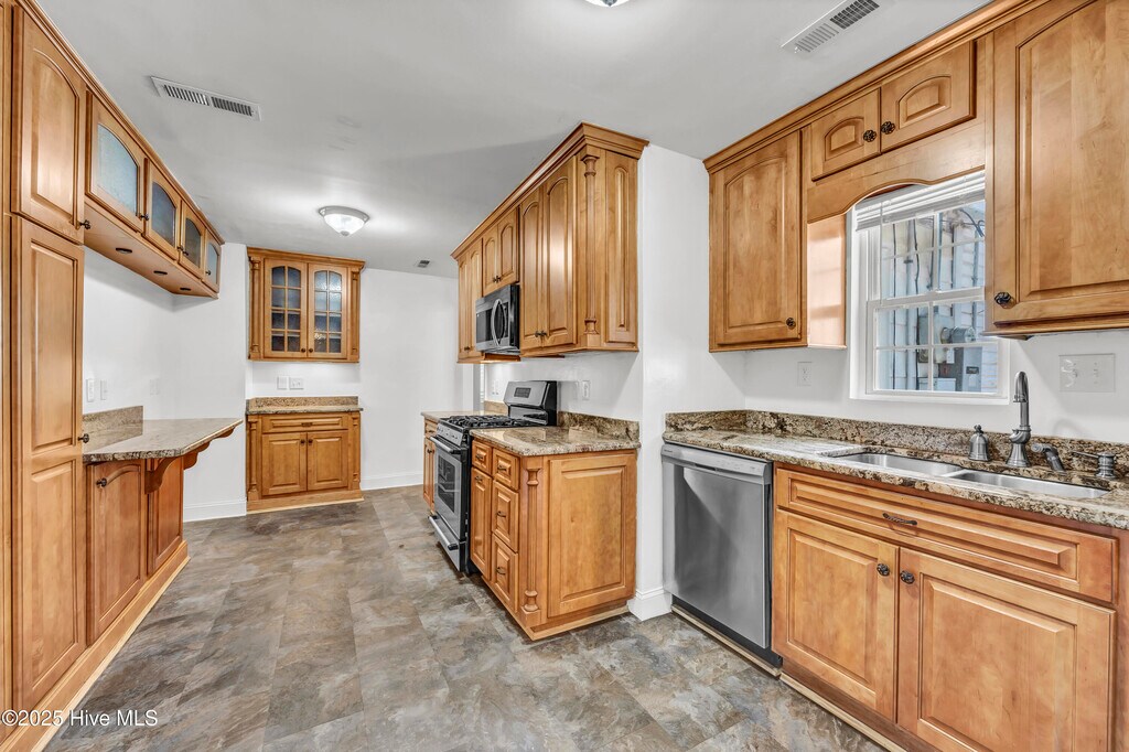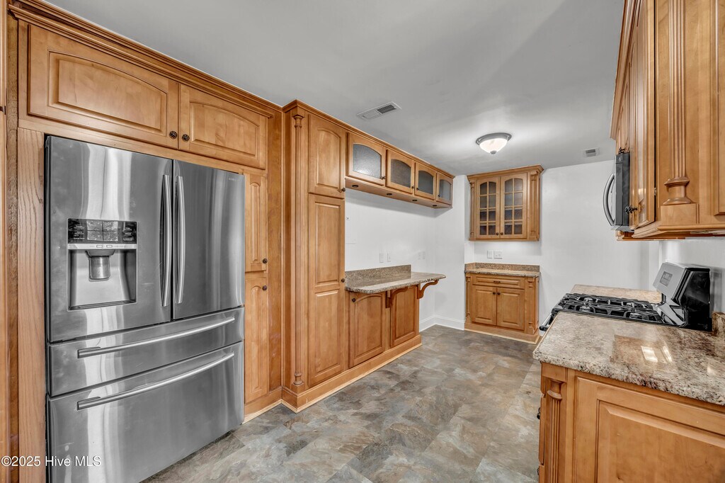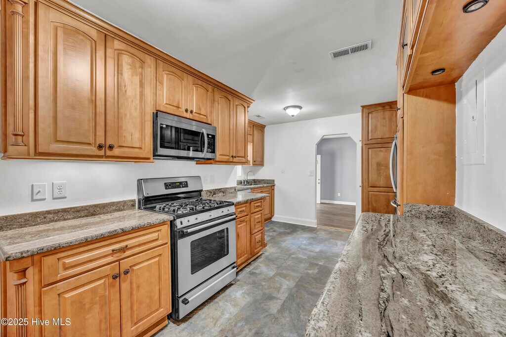 Spacious 3 Bedroom, 2.5 Bath home on corner lot near South Front Street & Greenfield Lake. This charming 3-bedroom, 2.5-bath home sits on a generous corner lot just minutes from South Front Street shopping, dining, and all the outdoor amenities of Greenfield Lake. Originally built in 1952, the home retains its vintage character while offering numerous modern updates for today's lifestyle. Step into the fully renovated kitchen featuring granite countertops, stainless steel appliances, including gas stove, new refrigerator, new microwave, and new flooring. There is under cabinet lighting, plenty of cabinet space with pull out drawers and a pantry. The expansive layout of this home includes two dining areas, a light-filled sunroom, and a spacious great room with a cozy gas fireplace and convenient half bath--ideal for entertaining or relaxing. An additional electric fireplace with remote is located in the main living room with hard wood floors that seamlessly flow into the formal dining area. Also on this level are two generous sized bedrooms, a full hall bath, and laundry room with washer and dryer. Upstairs is dedicated entirely to the private, oversized primary suite with an abundance of natural light, beautiful tile flooring, another fireplace, walk-in closet, a luxurious full bathroom with soaking tub, upgraded vanity and an open tiled walk-in shower. Enjoy the happenings of the neighborhood from the covered front porch, and the sounds of nature from your own beautiful gazebo at the corner, and a pergola off the sunroom. Additional features include both a carport and detached garage with new automatic door and plenty of room for extra storage and whole house generator. With tons of living space and natural light throughout, this home blends timeless charm with thoughtful updates in one of Wilmington's most desirable areas. Pets negotiable. No smoking. Immediate availability.
